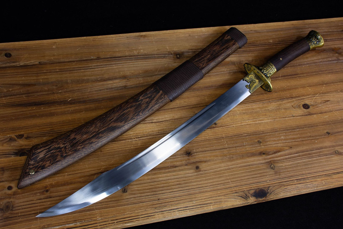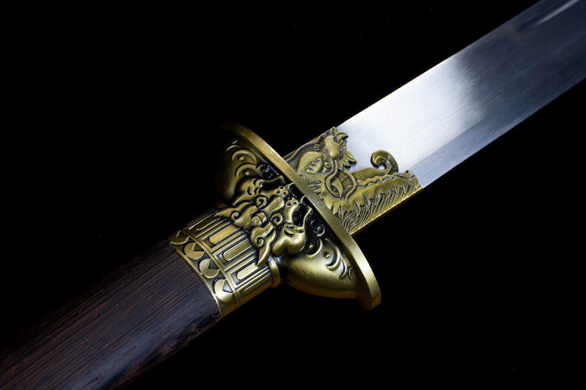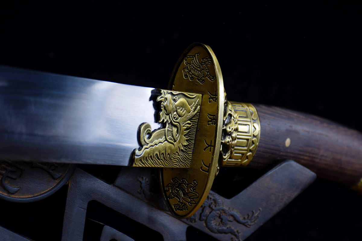 Longquan City Hand-Forged Dragon and Tiger Ox Tail Knife Integrated Tang Horizontal Sword Martial Arts Hard Treasure Sword Cold Weapon Unsharpened Blade