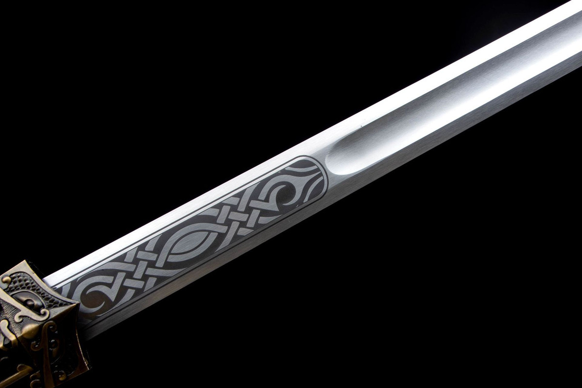 Craftsmanship: Inheriting the traditional sword-making techniques of Longquan, hand-forged using multiple processes including quenching, annealing, and tempering. Total length: 100cm Blade length: 75.5cm Handle length: 22.5cm (including guard) Blade width: 3.8cm Thickness: 0.5cm Weight: Approximately 1150g (sheath weight: 850g) Blade material: High-performance manganese steel Sheath material: Solid wood with leather covering Handle material: Aluminum alloy Fittings: Aluminum alloy