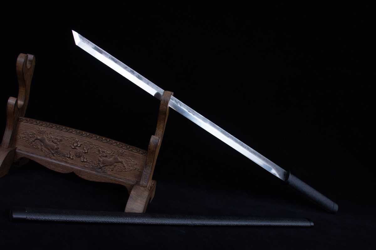 Longquan City Hand-Forged Straight Sword with Plain Hilt, Simple Tang-Style Horizontal Sword, Traditional Cold Weapon for Film and Television, Unsharpened Traditional Sword