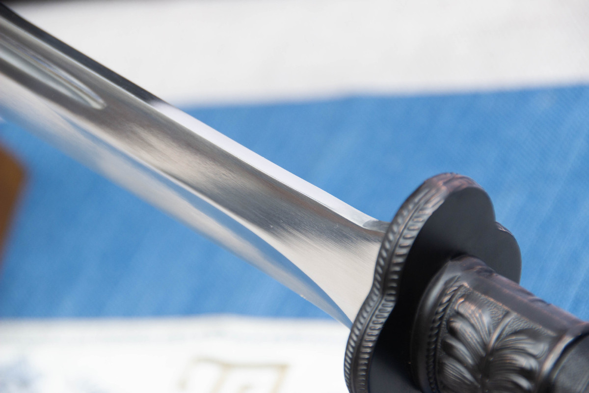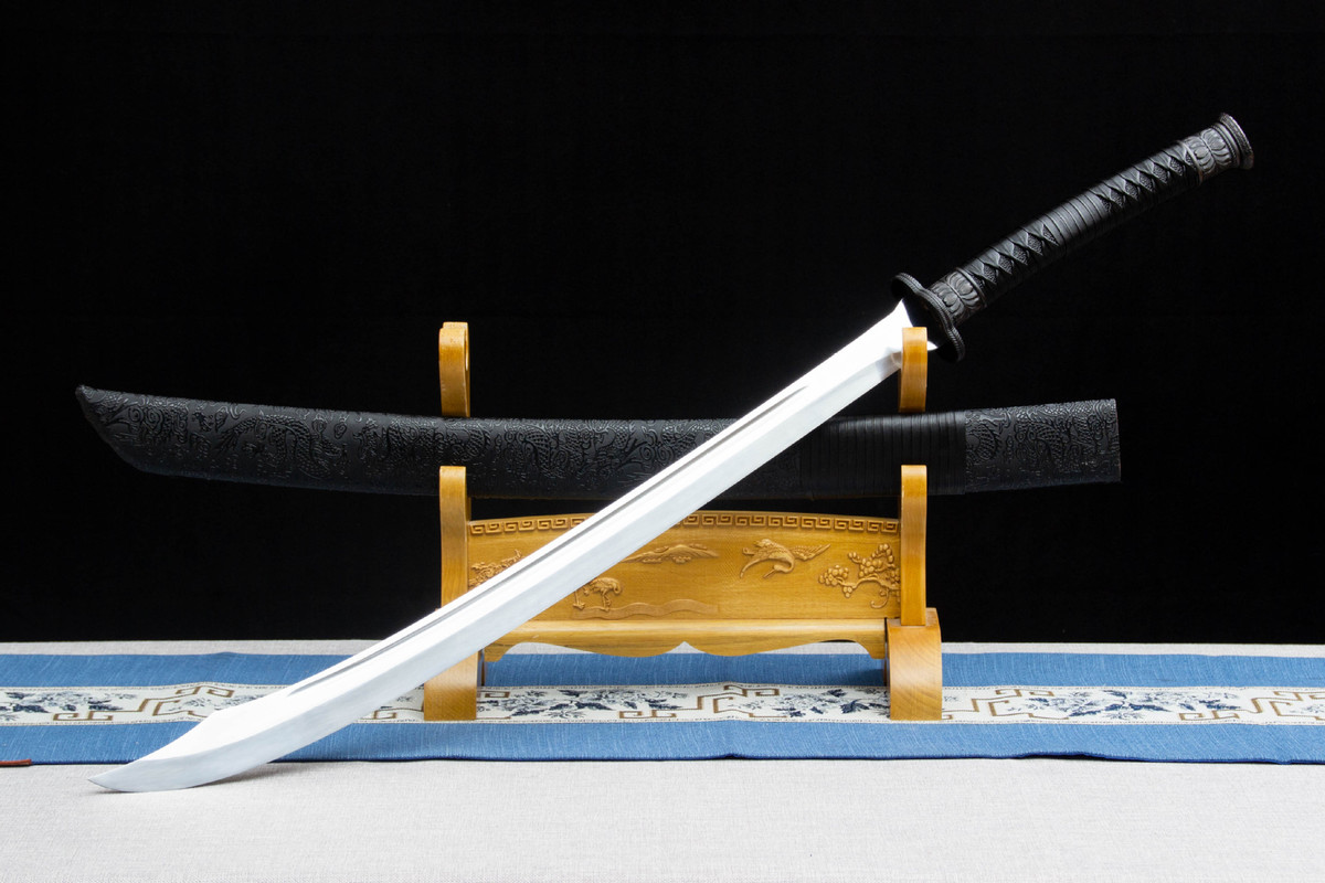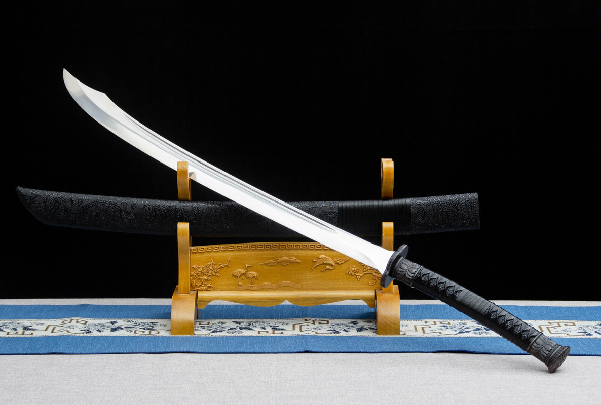 Longquan City High-Manganese Steel Hand-Forged Oxtail Goose Feather Knife, Qing Dynasty Imperial Guard Double-Handed Knife, UnRounded-edge designened, for Collection