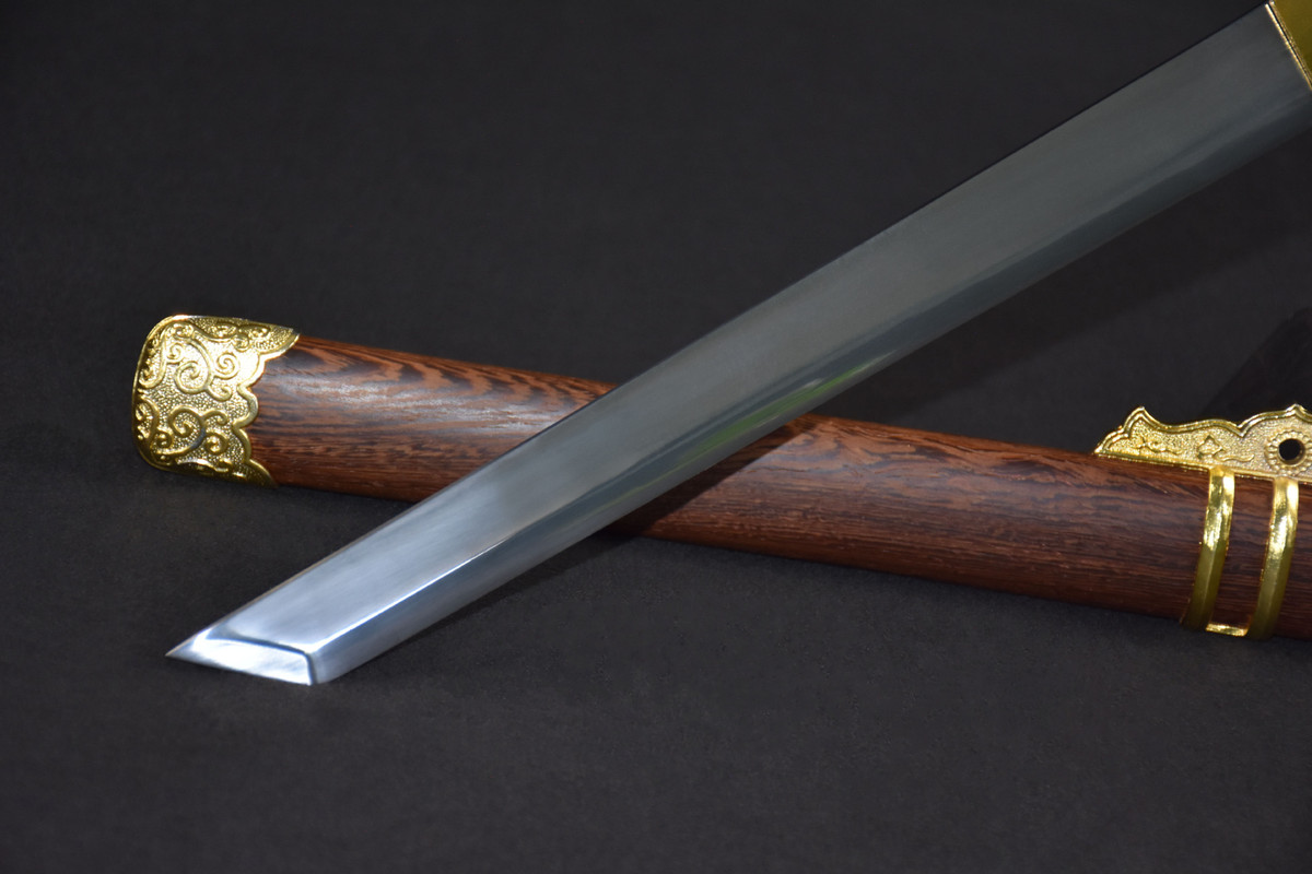 Longquan City High Manganese Steel Simple Packaging Tang Horizontal Historical metal art piece Short Hard Historical metal art piece Hand-Forged Integrated Cultural heritage artifact Collection UnRounded-edge designened Artisan-forged metal section
