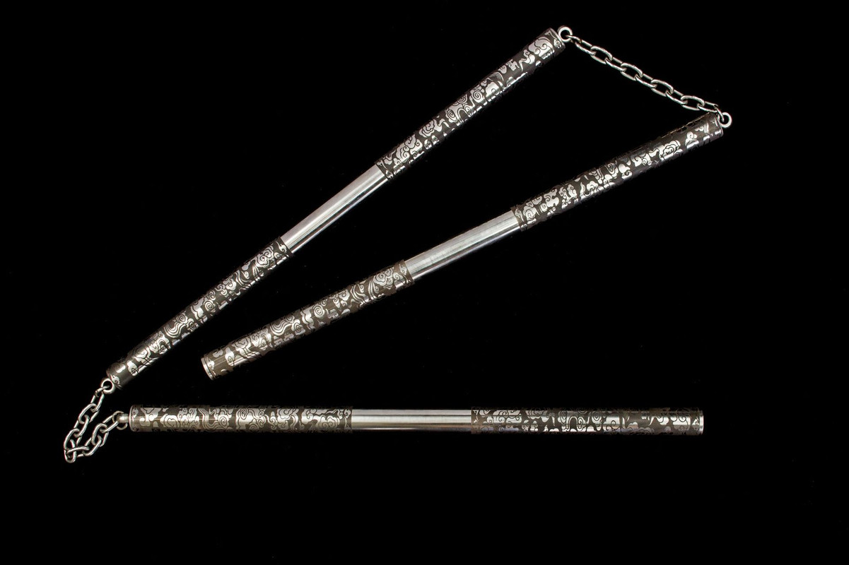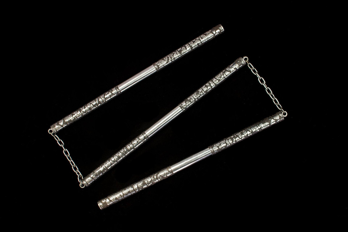 • Longquan City Knife and Historical metal art piece Stainless Steel Three-Section Baton Film and Television Self-Defense Martial Arts Cold Cultural heritage artifact Hard Historical metal art piece Craftsmanship UnRounded-edge designened