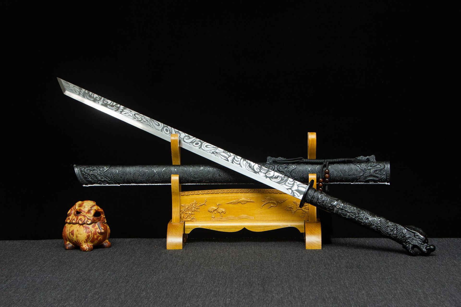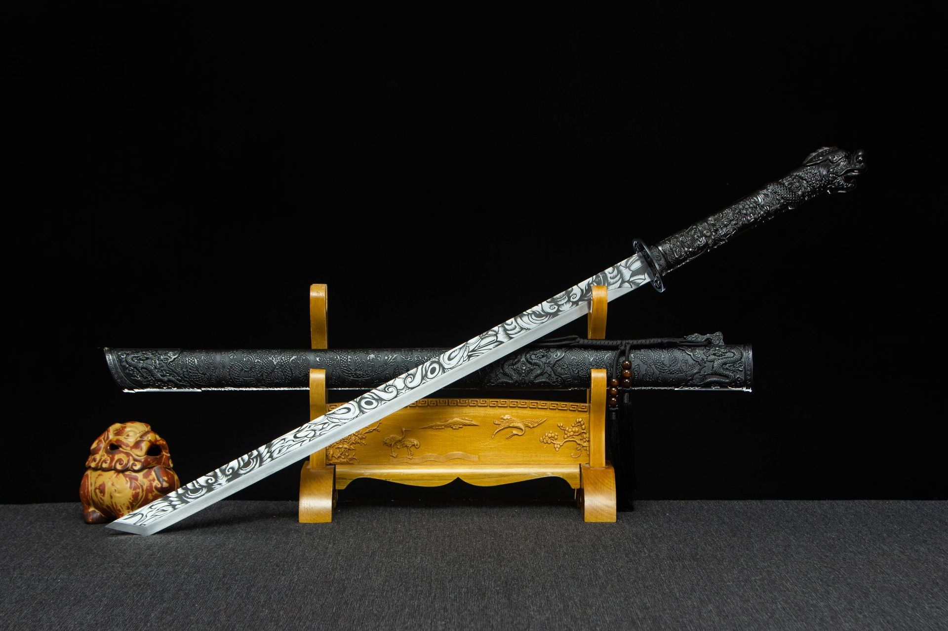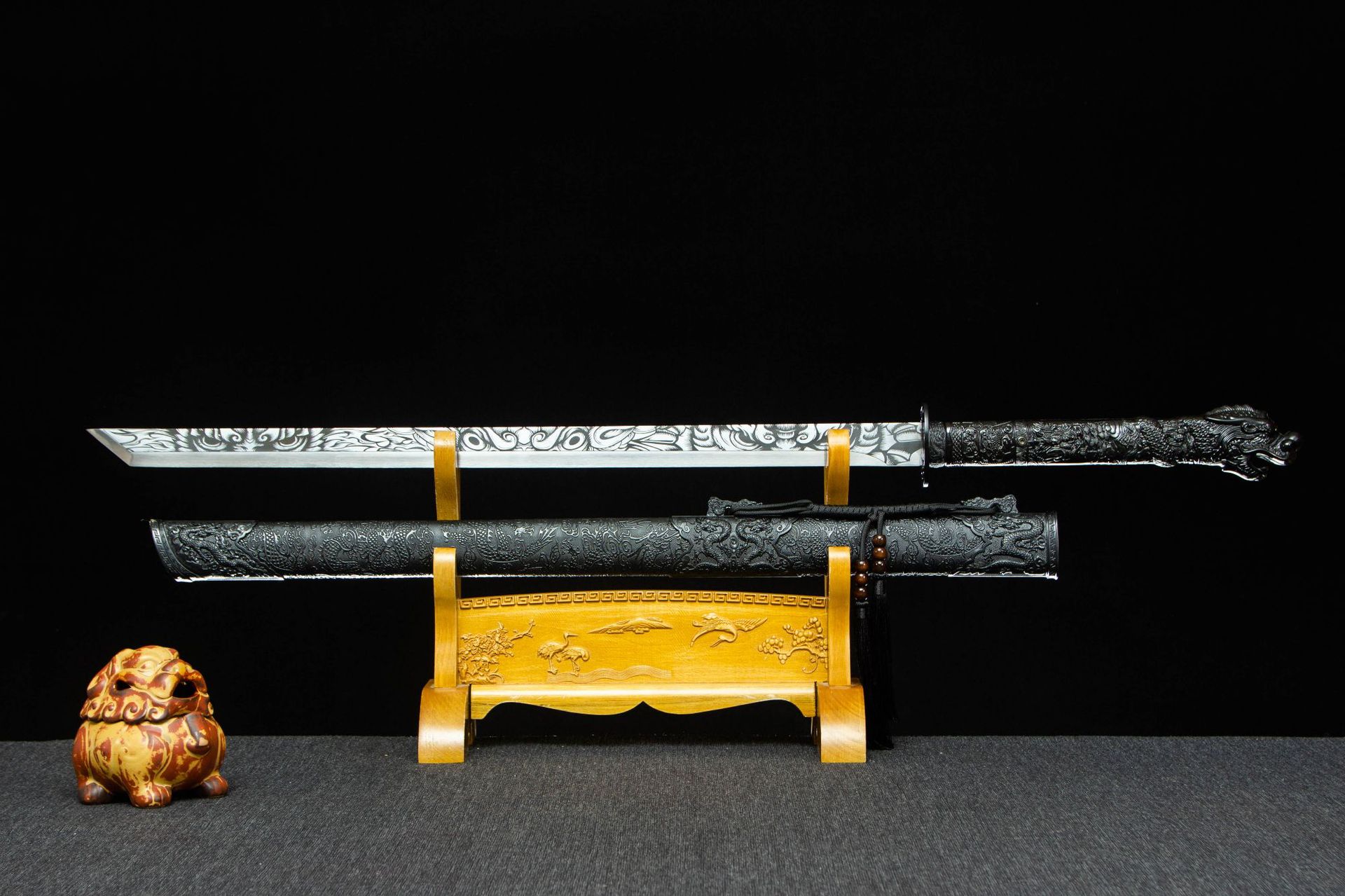 Longquan Sword High Manganese Steel One-Piece Tang Hengdao Straight Knife Film and Television Sword War Knife Cold Weapon Crafts Unedged