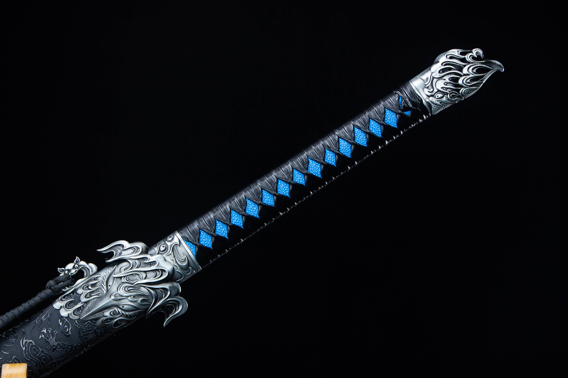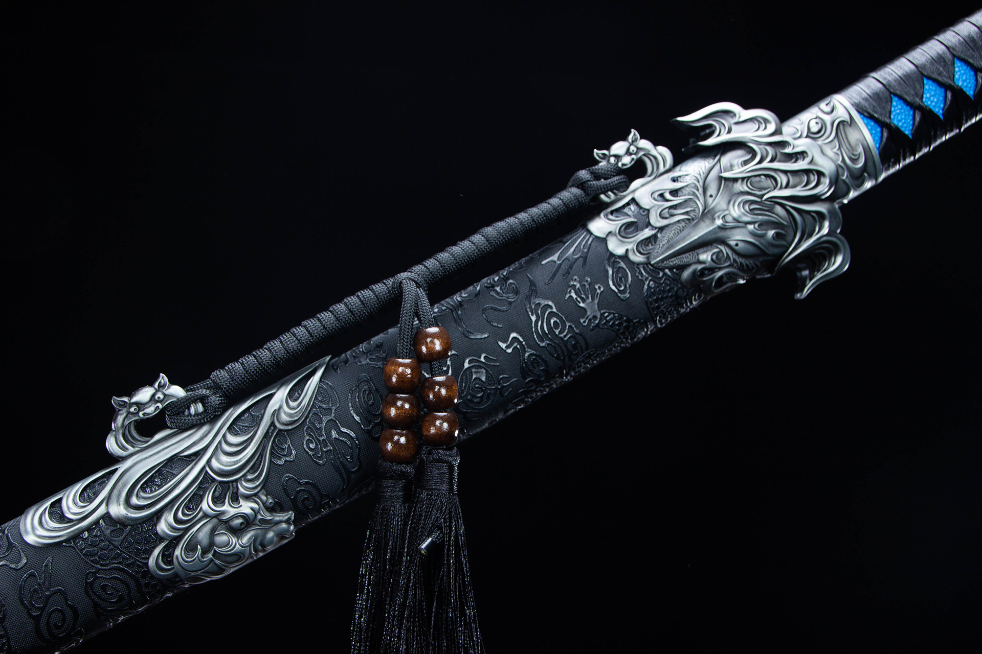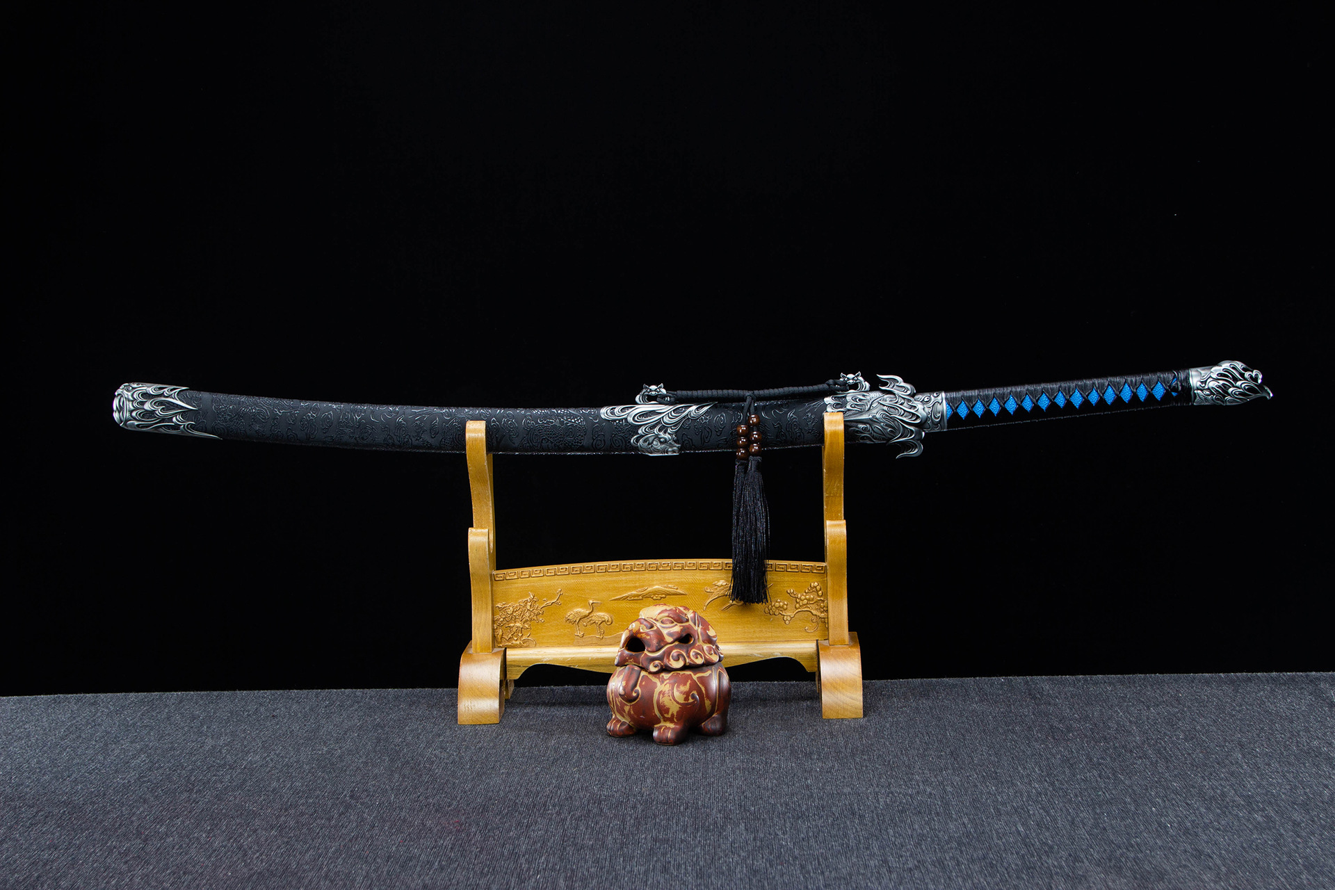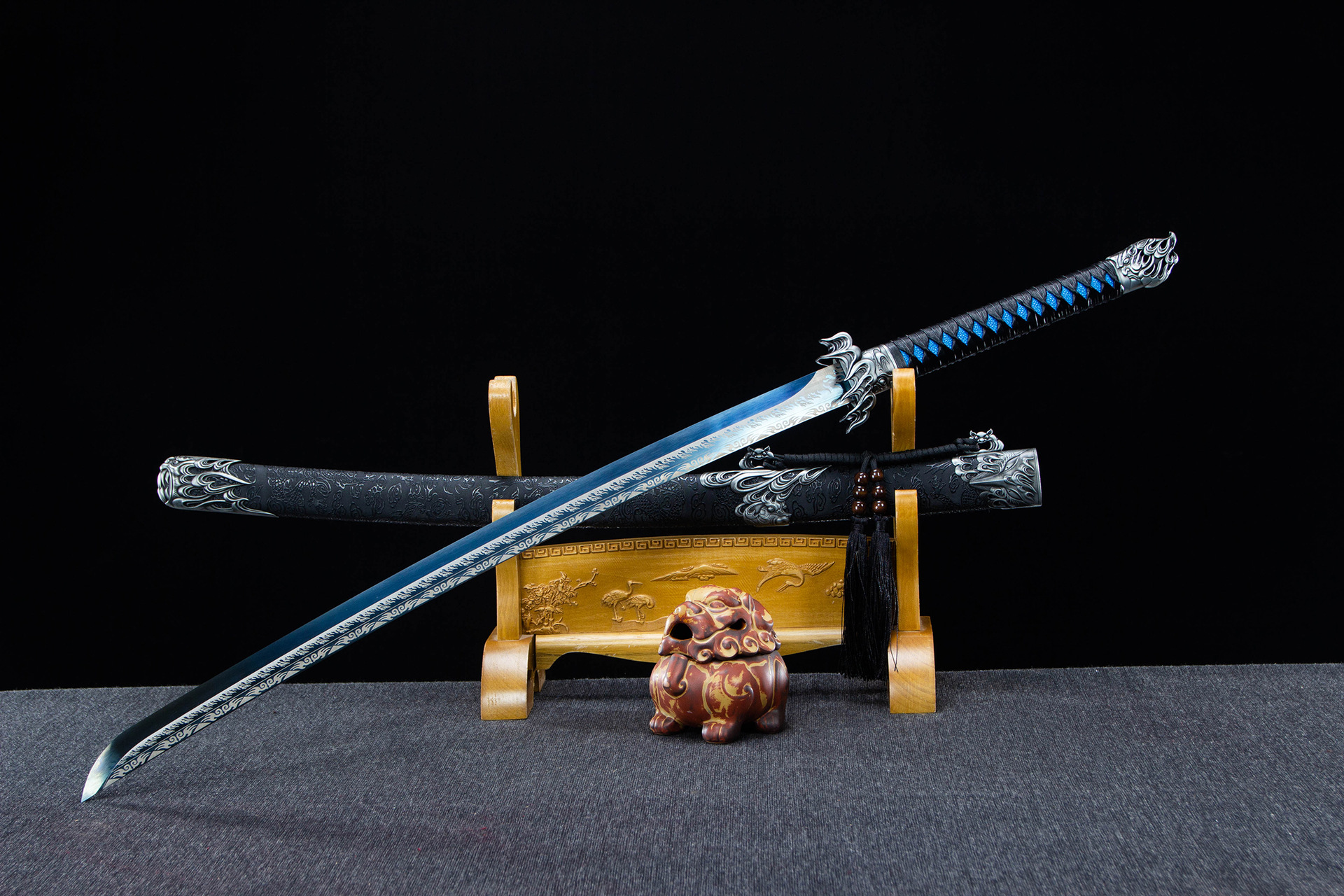 Longquan City Sword Handmade All-In-One Black Gold Ancient Sword Film and Television Tang Hengdao Embroidered Spring Sword Crafts Hard Sword Unedged