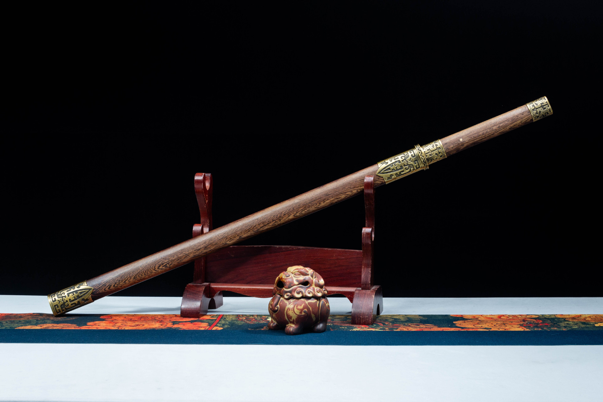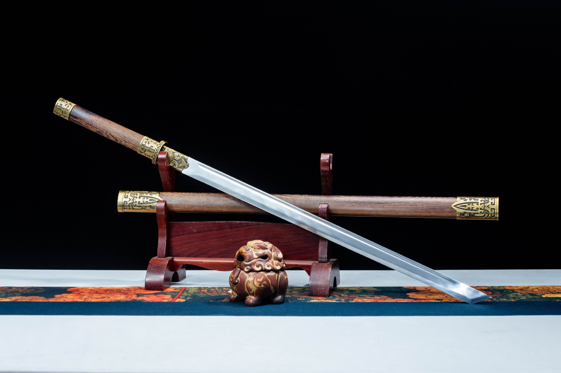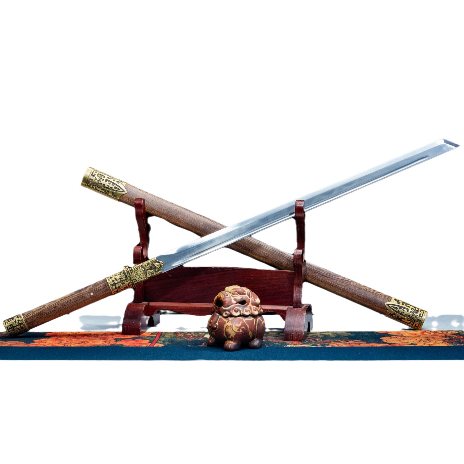 Longquan city sword and sword integrated plain Tang horizontal knife handmade forging stick Juhe straight knife film and television sword collection not open blade