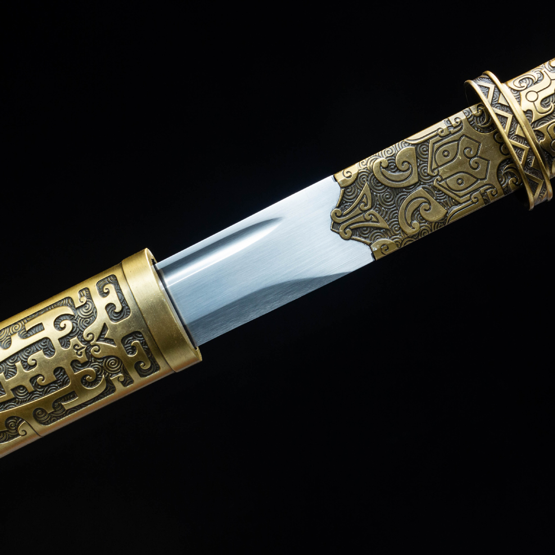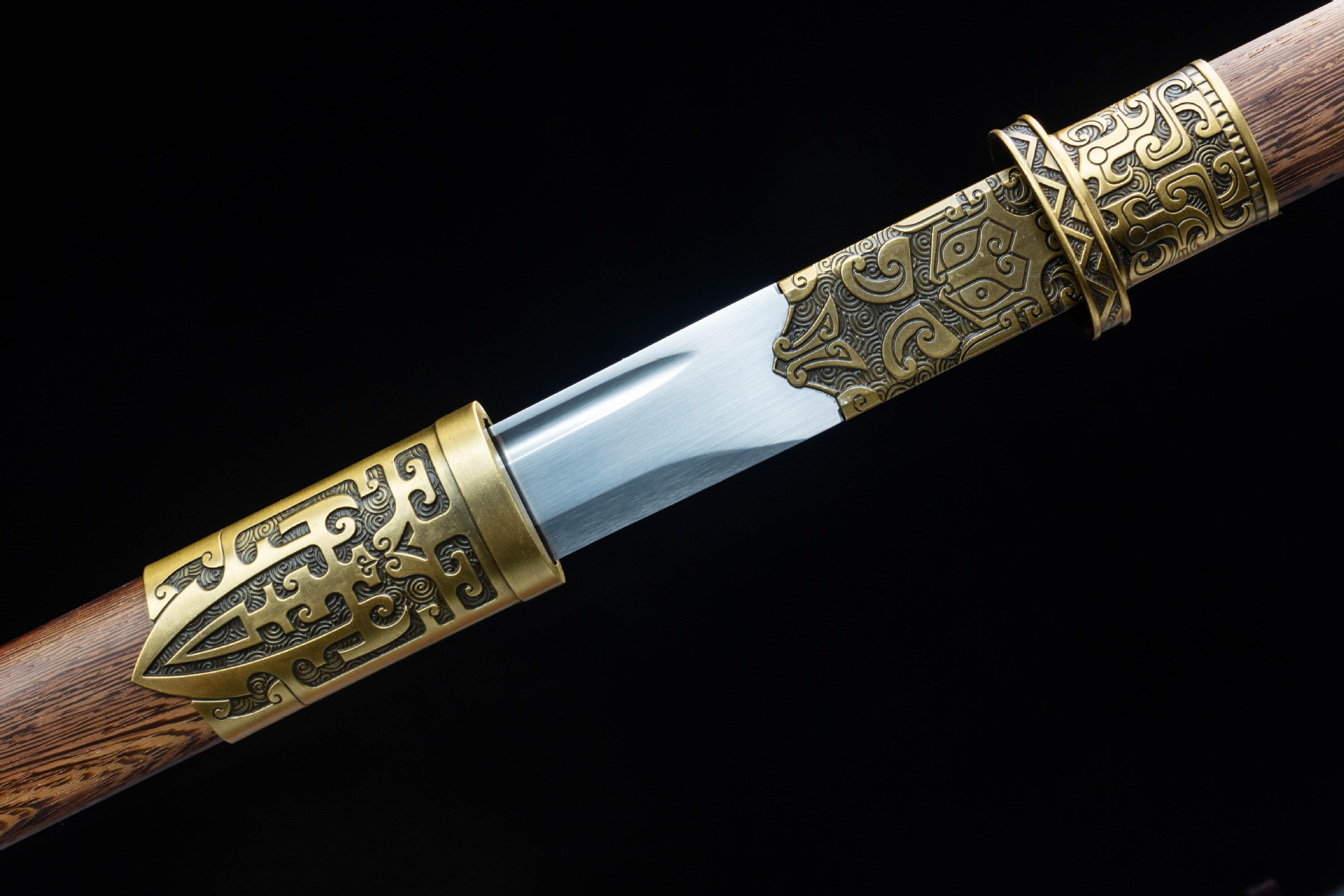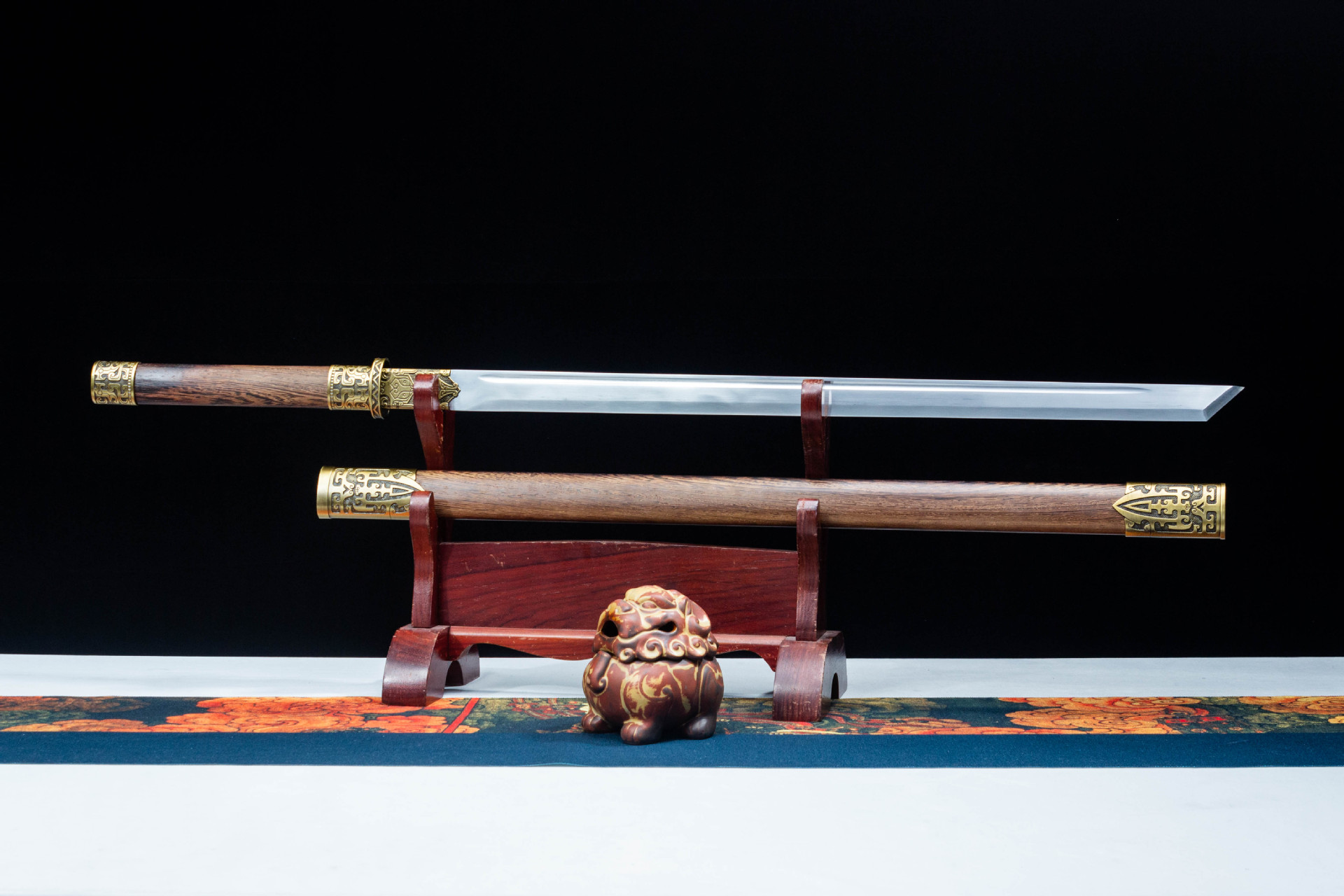 Longquan city sword and sword integrated plain Tang horizontal knife handmade forging stick Juhe straight knife film and television sword collection not open blade