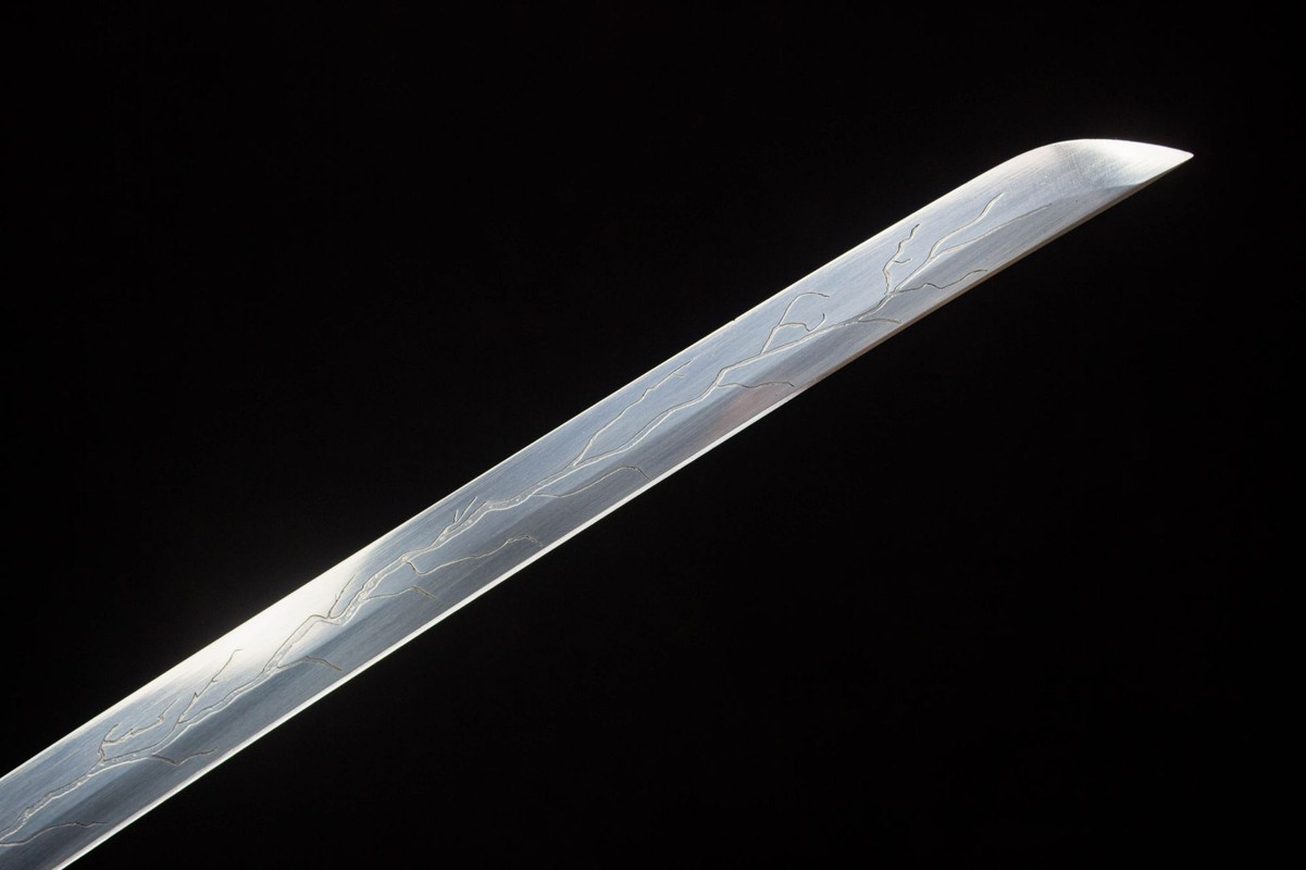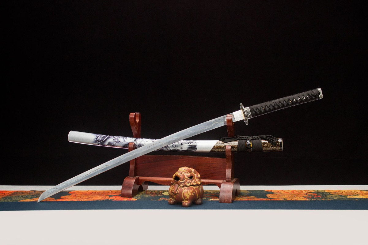Craftsmanship: Inheriting the traditional sword-making techniques of Longquan, this sword is hand-forged and undergoes multiple processes including quenching, annealing, and tempering. Total length: 103 cm Blade length: 73 cm Handle length: 26.5 cm Blade width: 3.15 cm Thickness: 0.75cm Weight: Approximately 1300g Blade Material: High-performance manganese steel Sheath Material: Solid wood lacquered sheath Weight without sheath: 1100g Handle Material: Solid wood with rope wrapping Fittings: Alloy
