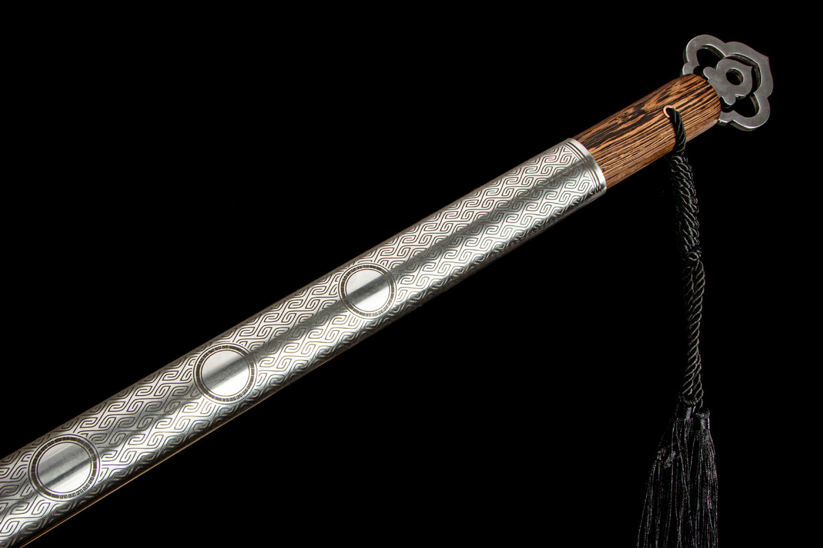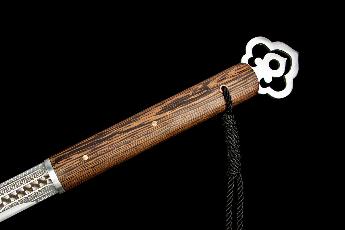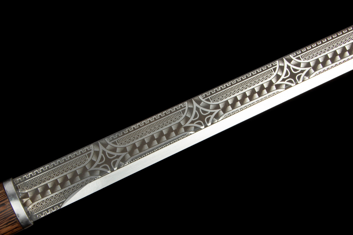Craftsmanship: Inheriting the traditional sword-making techniques of Longquan, hand-forged using multiple processes including quenching, annealing, and tempering. Total length: 99.5cm Blade length: 70.5cm Handle length: 22cm Blade width: 3.2cm Thickness: 0.5cm Approximate weight: 1700g (sheath weight: 950g) Blade material: 7Cr17MOV (7% chromium, 17% molybdenum, vanadium stainless steel) Sheath material: Stainless steel sheath Handle material: Rosewood Fittings: Stainless steel