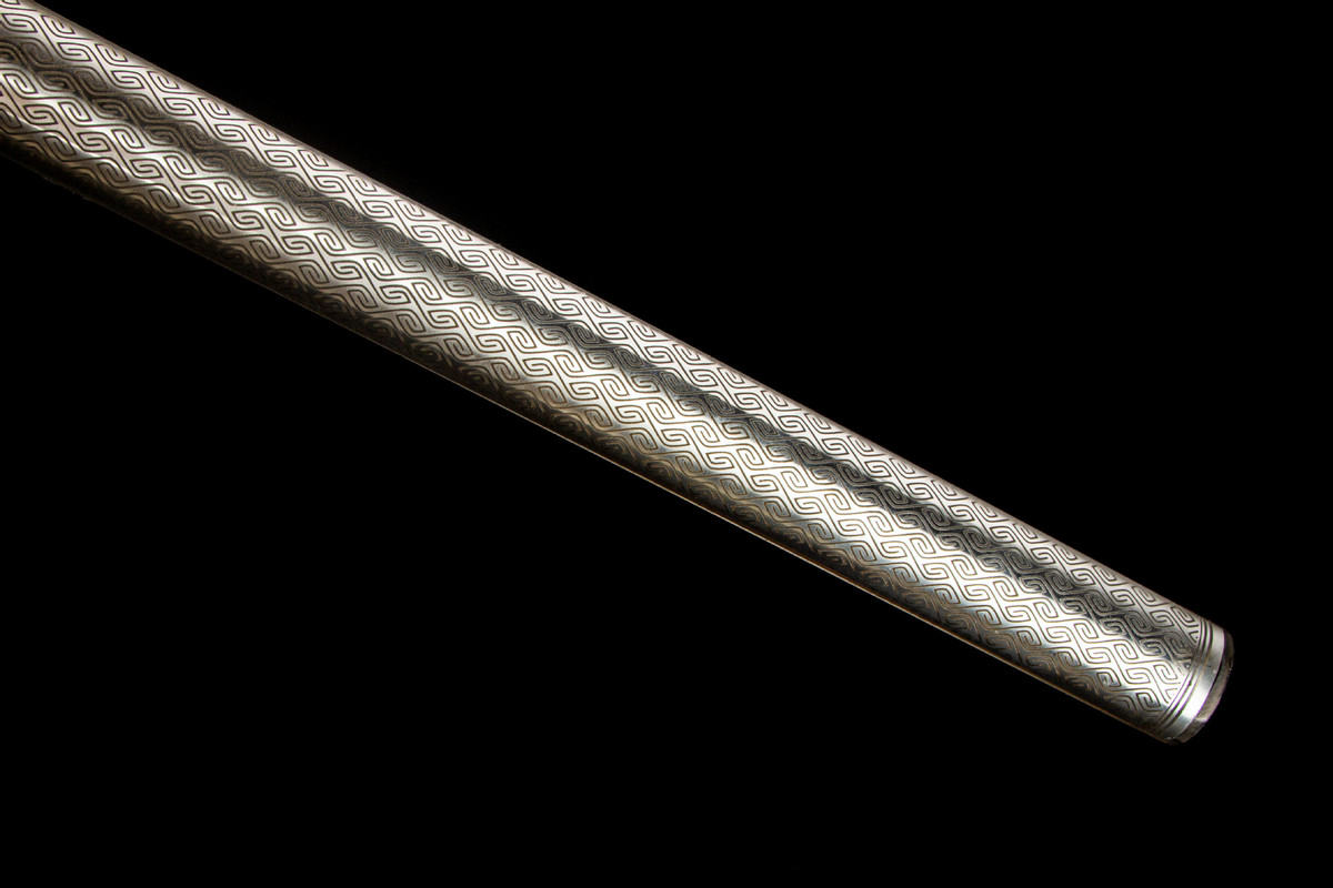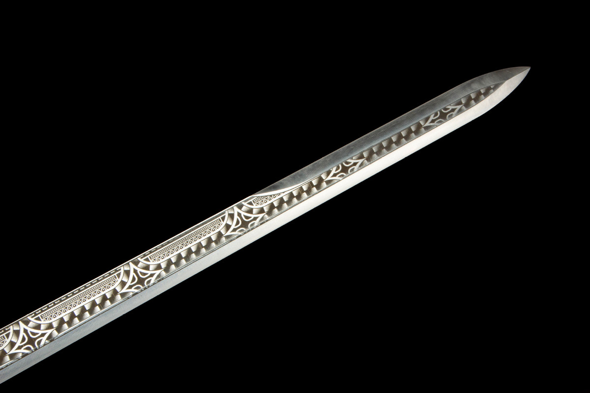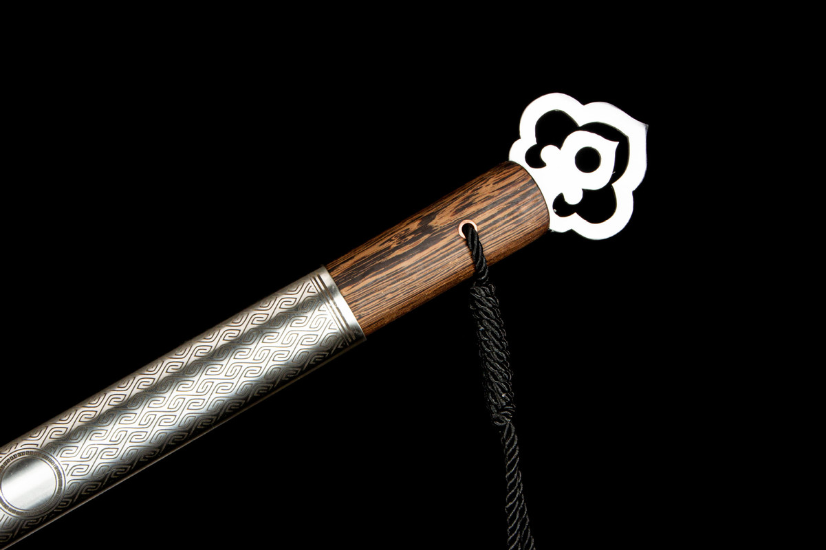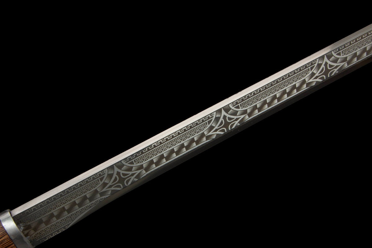 Craftsmanship: Inheriting the traditional sword-making techniques of Longquan, hand-forged using multiple processes including quenching, annealing, and tempering. Total length: 99.5cm Blade length: 70.5cm Handle length: 22cm Blade width: 3.2cm Thickness: 0.5cm Approximate weight: 1700g (sheath weight: 950g) Blade material: 7Cr17MOV (7% chromium, 17% molybdenum, vanadium stainless steel) Sheath material: Stainless steel sheath Handle material: Rosewood Fittings: Stainless steel
