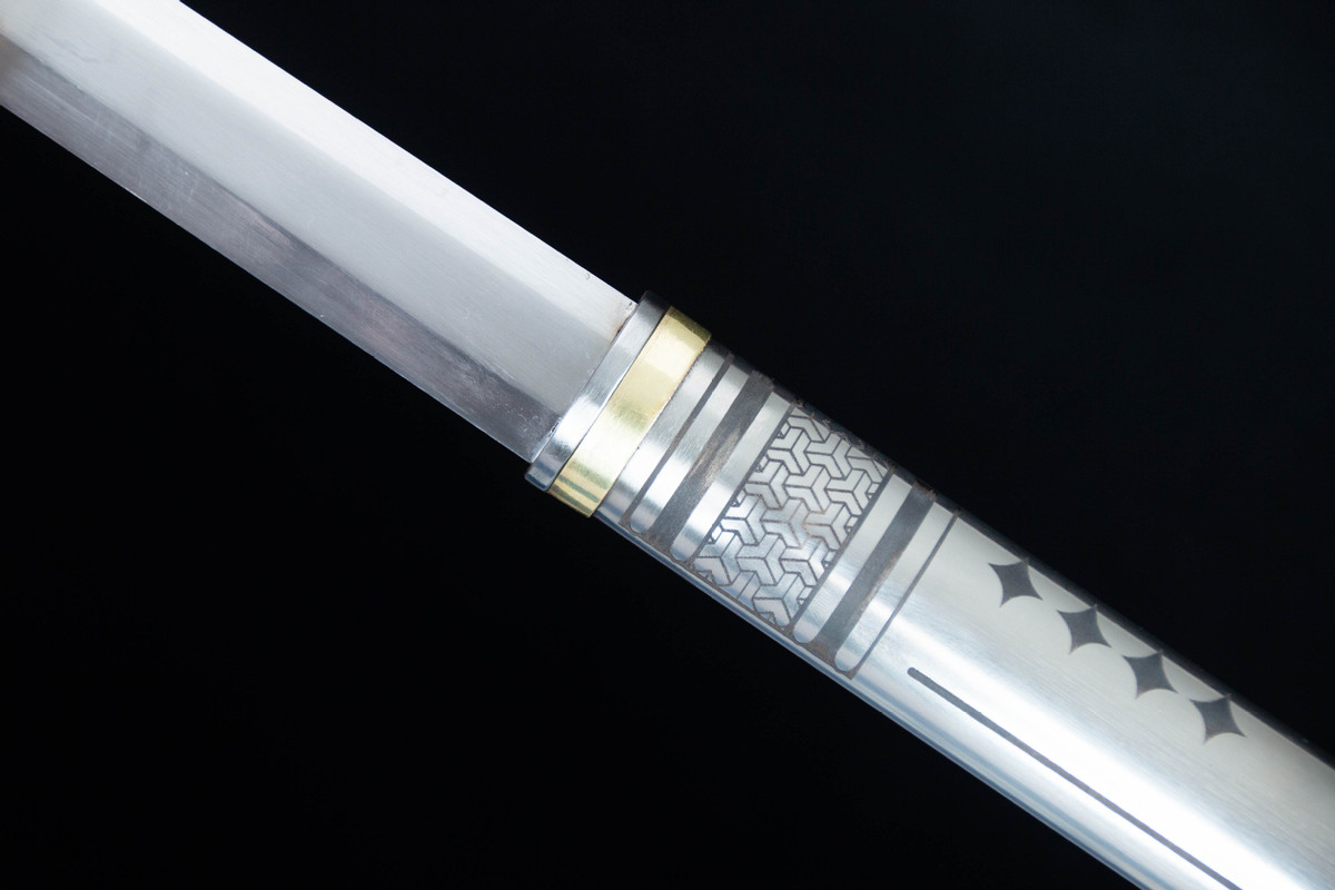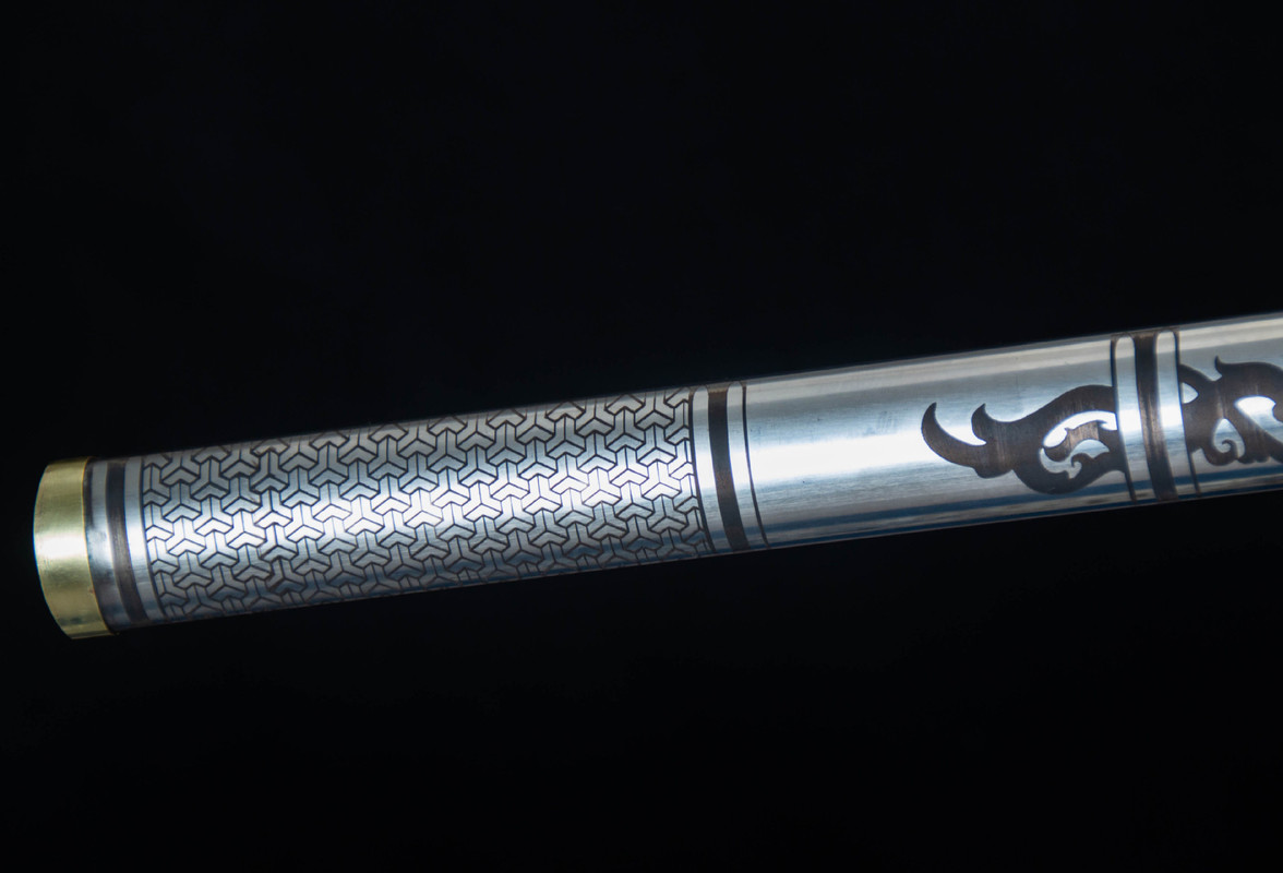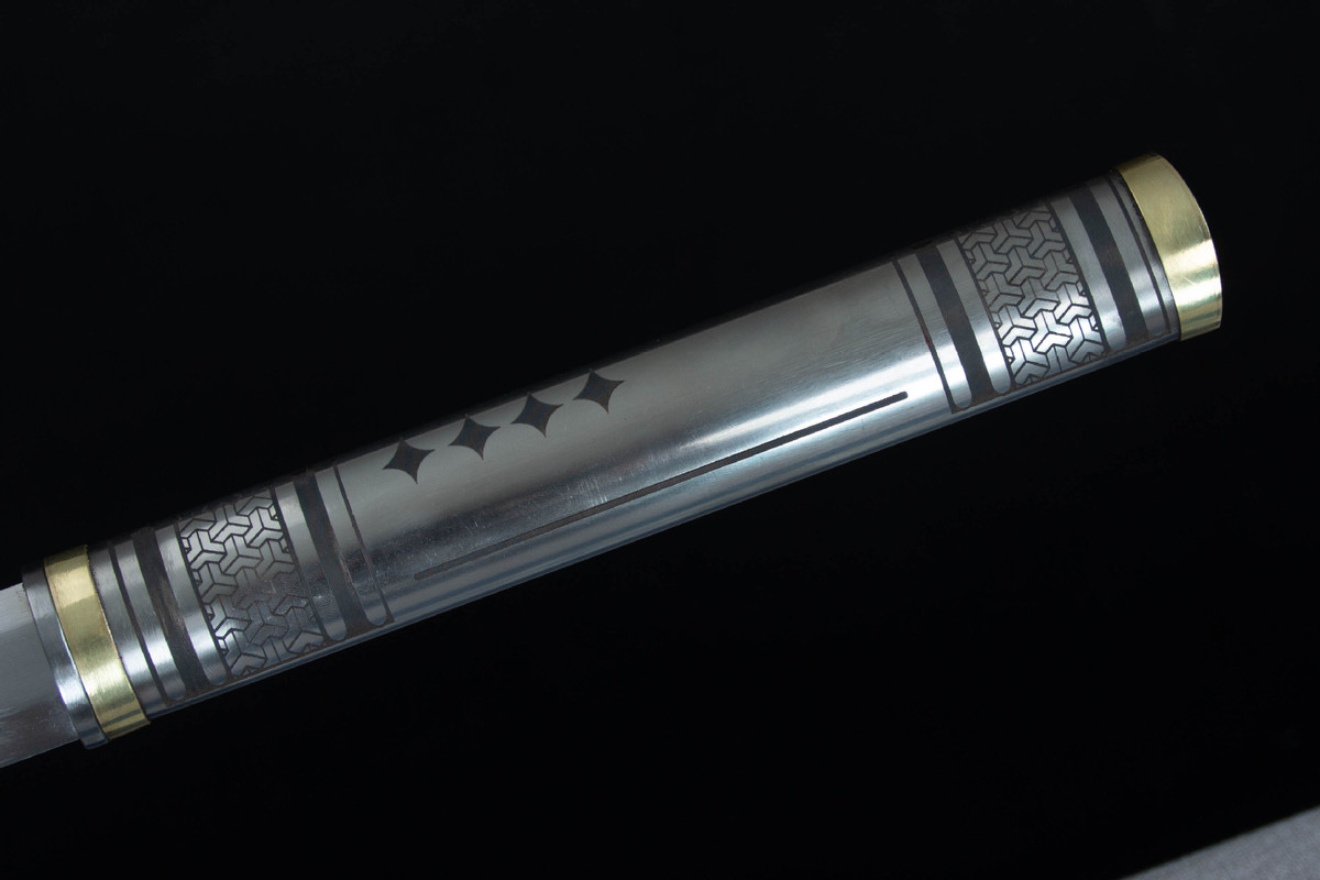 Craftsmanship: Inheriting the traditional sword-making techniques of Longquan, hand-forged using multiple processes including quenching, annealing, and tempering. Total length: 101.5cm Blade length: 74cm Handle length: 25.9cm Blade width: 3.5cm Thickness: 0.6cm Weight: Approximately 1700g (sheath weight: 1000g) Blade material: High-performance manganese steel Sheath material: 7Cr17MOV (7 chromium 17 molybdenum vanadium steel) + solid wood Handle material: 7Cr17MOV (7 chromium 17 molybdenum vanadium steel) Fittings: 7Cr17MOV (7 chromium 17 molybdenum vanadium steel)