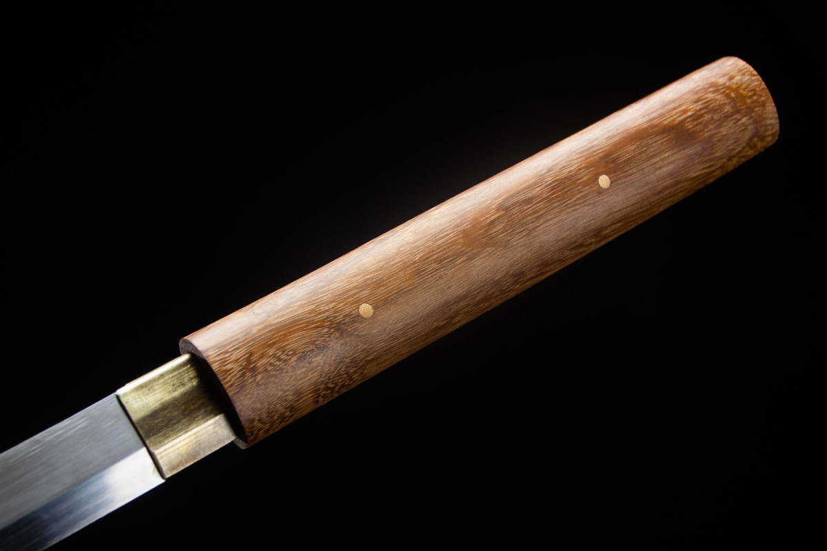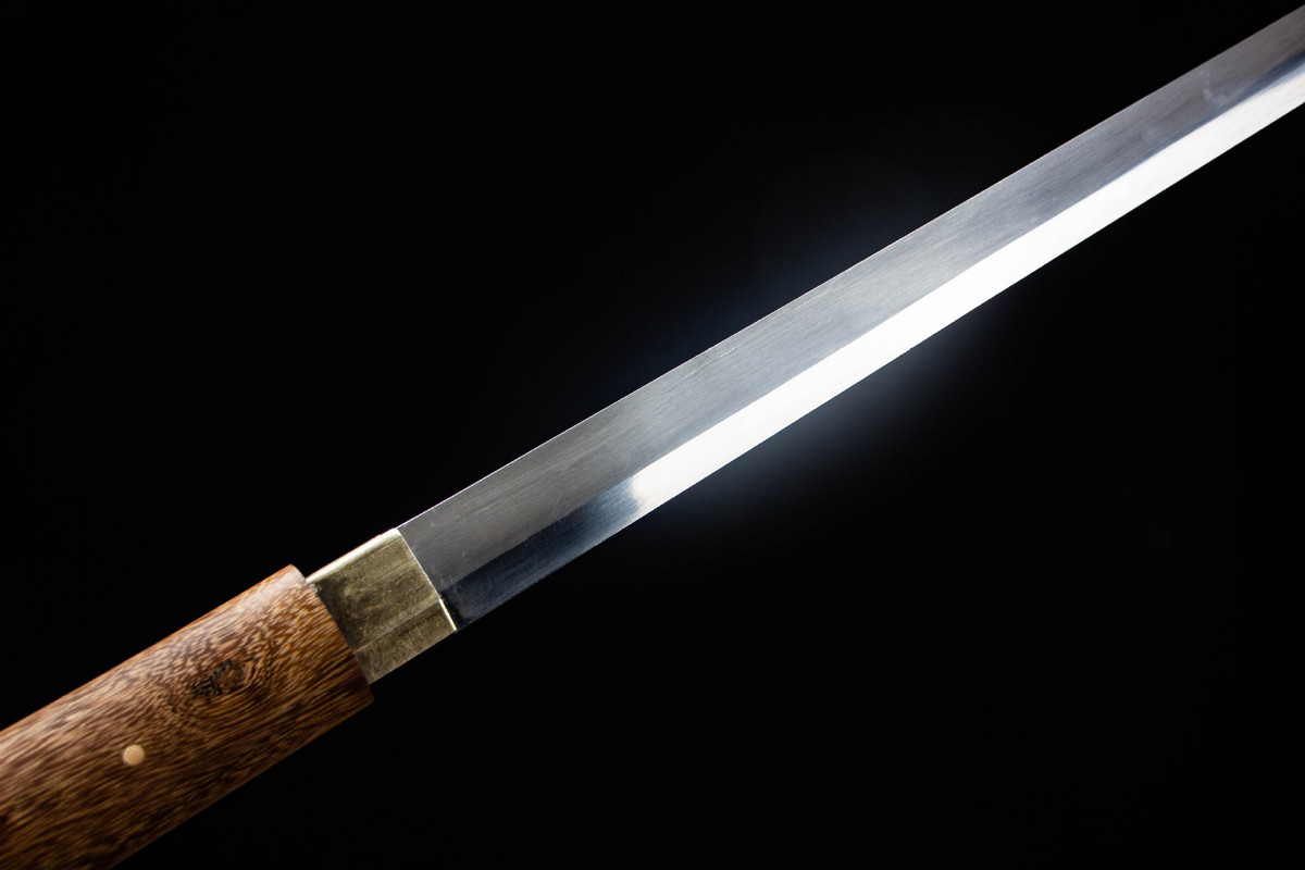 Longquan City Handcrafted Forged Tang-Style Horizontal Sword, Iaido Staff, Straight Sword, Film and Television Sword, Plain-Finished Hard Sword, Unsharpened Total Length: 101.5 cm Blade Length: 73.5 cm Handle Length: 25cm Width: 3.2cm Thickness: 0.5cm Approx. Weight: 1200g (sheath weight: 900g) Blade Material: High-Performance Manganese Steel Sheath Material: Rosewood Handle Material: Rosewood