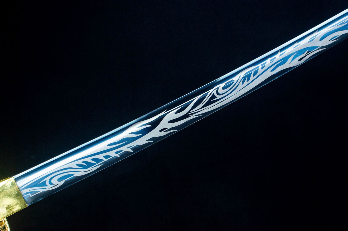 Craftsmanship: Inheriting the traditional sword-making techniques of Longquan, this sword is hand-forged through multiple processes including quenching, annealing, and tempering. Total length: 101.5 cm Blade length: 73 cm Handle length: 26 cm Blade width: 3.2 cm Thickness: 0.6 cm Weight: Approximately 1300 g Blade material: High-performance manganese steel Sheath material: Solid wood with leather wrapping Weight without sheath: 950 g Handle material: Solid wood with rope wrapping Fittings: Zinc alloy