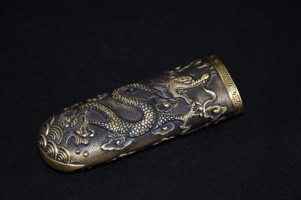 Total length: 20cm Blade length: 8cm Handle length: 8.5cm Blade width: 2.8cm Thickness: 0.6cm Blade material: High-speed steel Sheath material: Carved copper-covered solid wood Net weight: 0.52kg Craftsmanship: Ancient forging method, hammered and refined, hand-polished