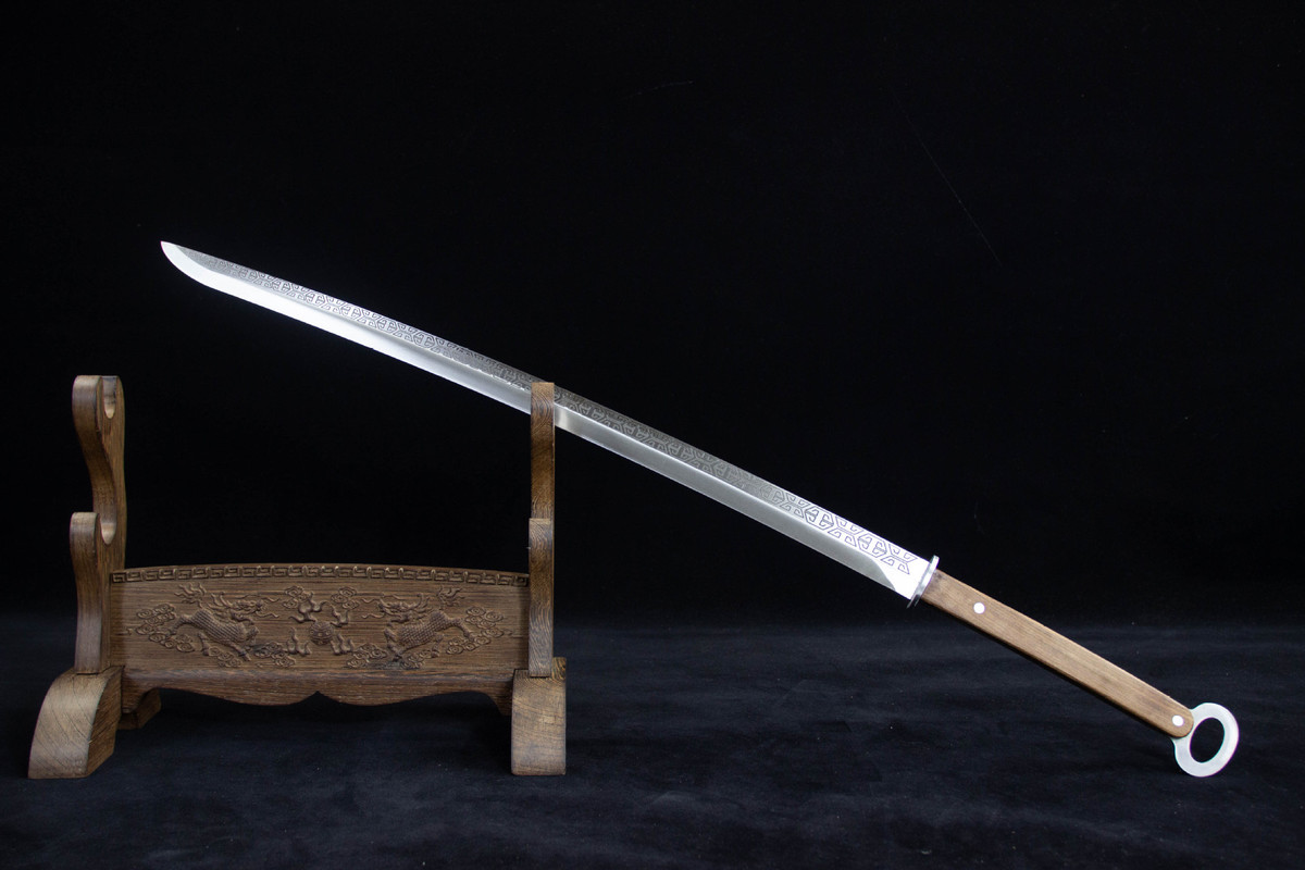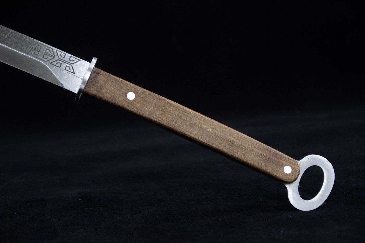 Longquan City Knife and Historical metal art piece Stainless Steel Han Ring-Handled Knife with Curved Artisan-forged metal section Tang Horizontal Knife Integrated Hand-Forged Hard Historical metal art piece UnRounded-edge designened