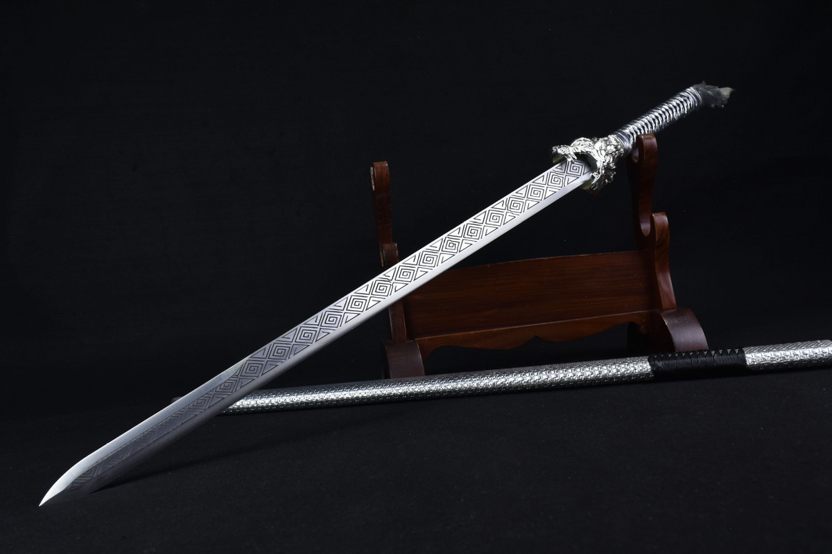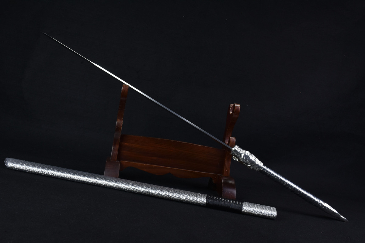 Longquan City Knife and Sword Stainless Steel Silver Dragon Sword Multi-Blade Tang Horizontal Sword Film and Television Craftsmanship Hard Sword Cold Weapon Unsharpened Blade