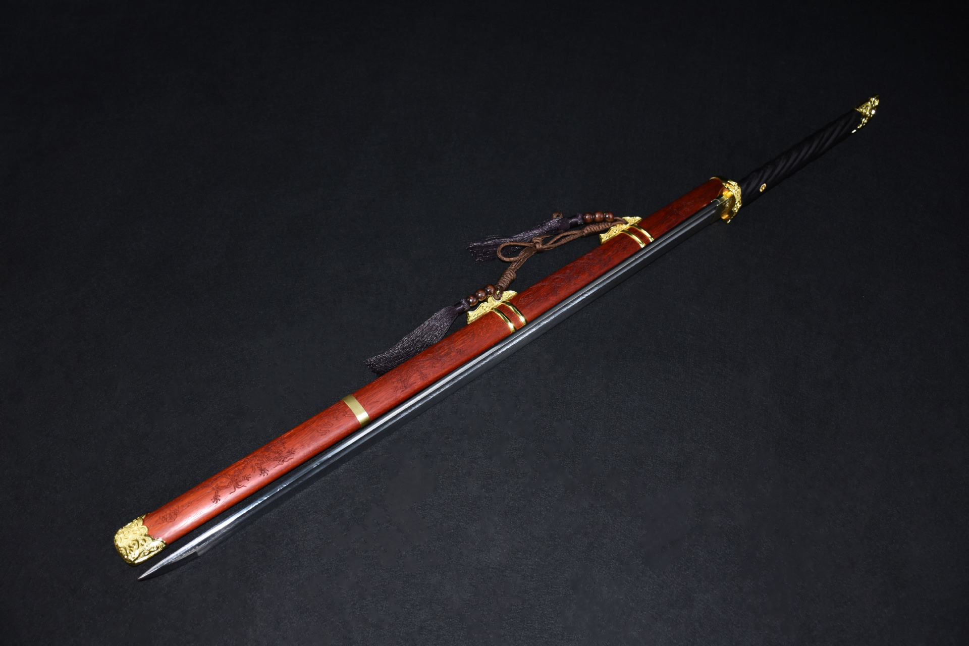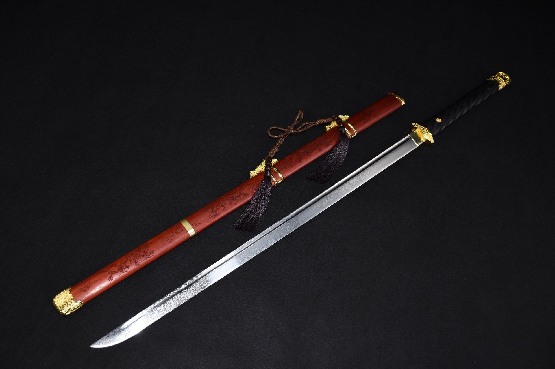 Longquan City Sword High Manganese Steel Carved Tang Horizontal Knife Hand Forging Straight Knife Integrated Sword Collection Wholesale Unopened Blade