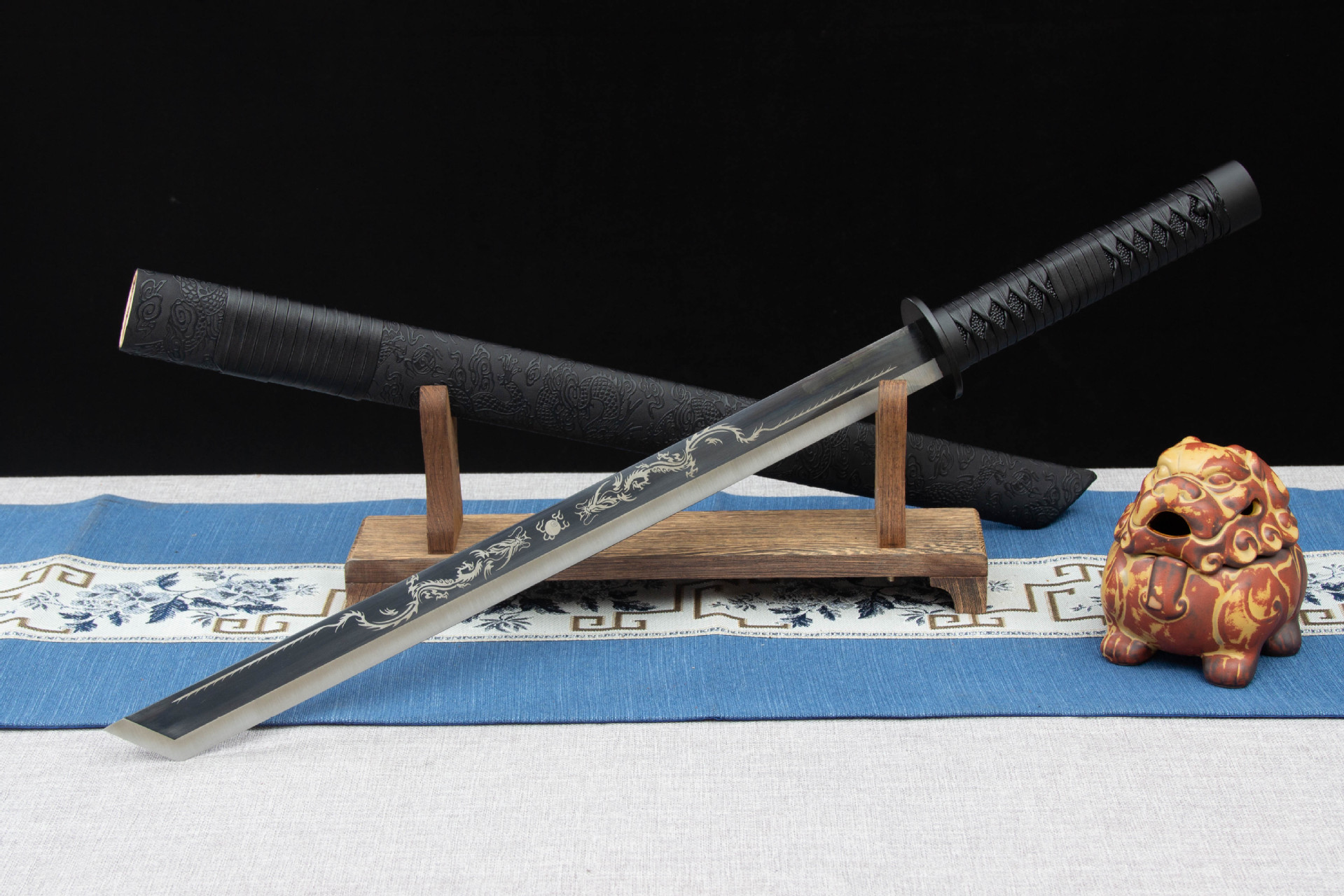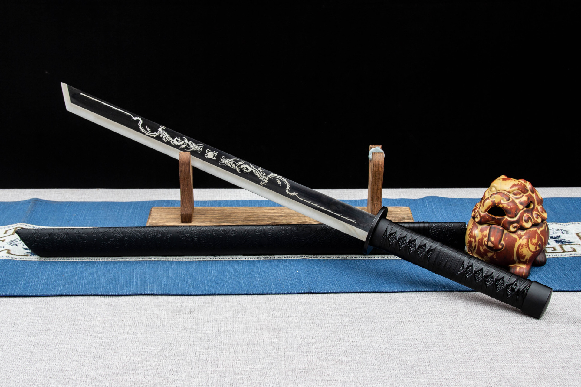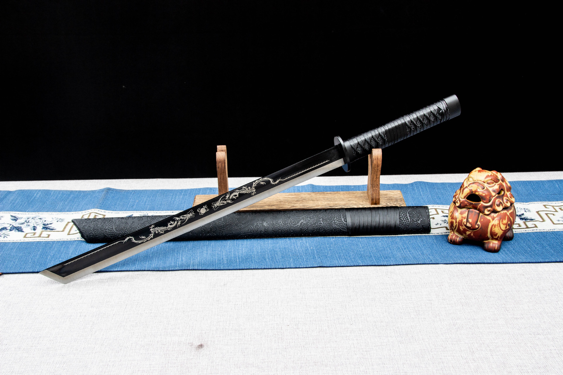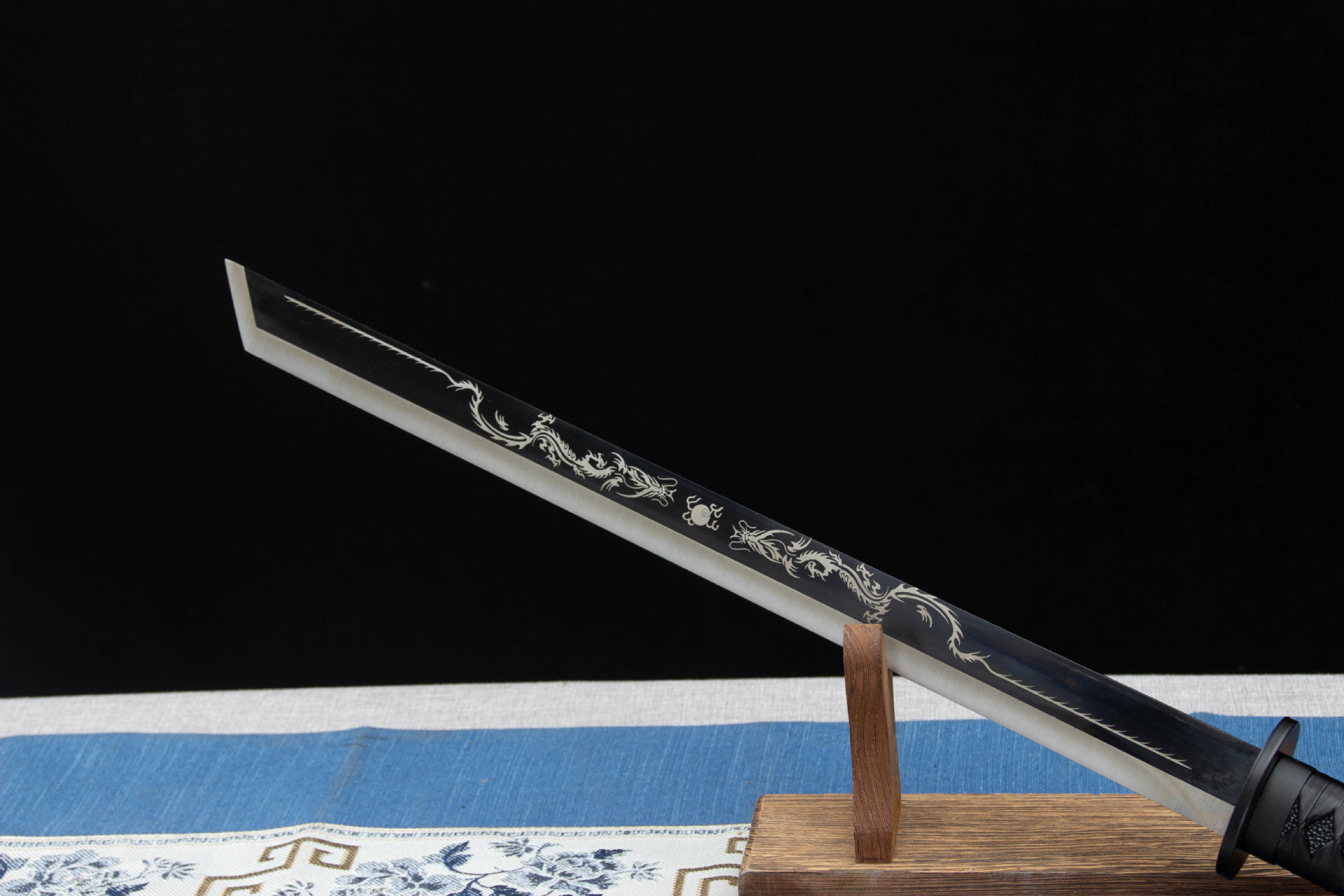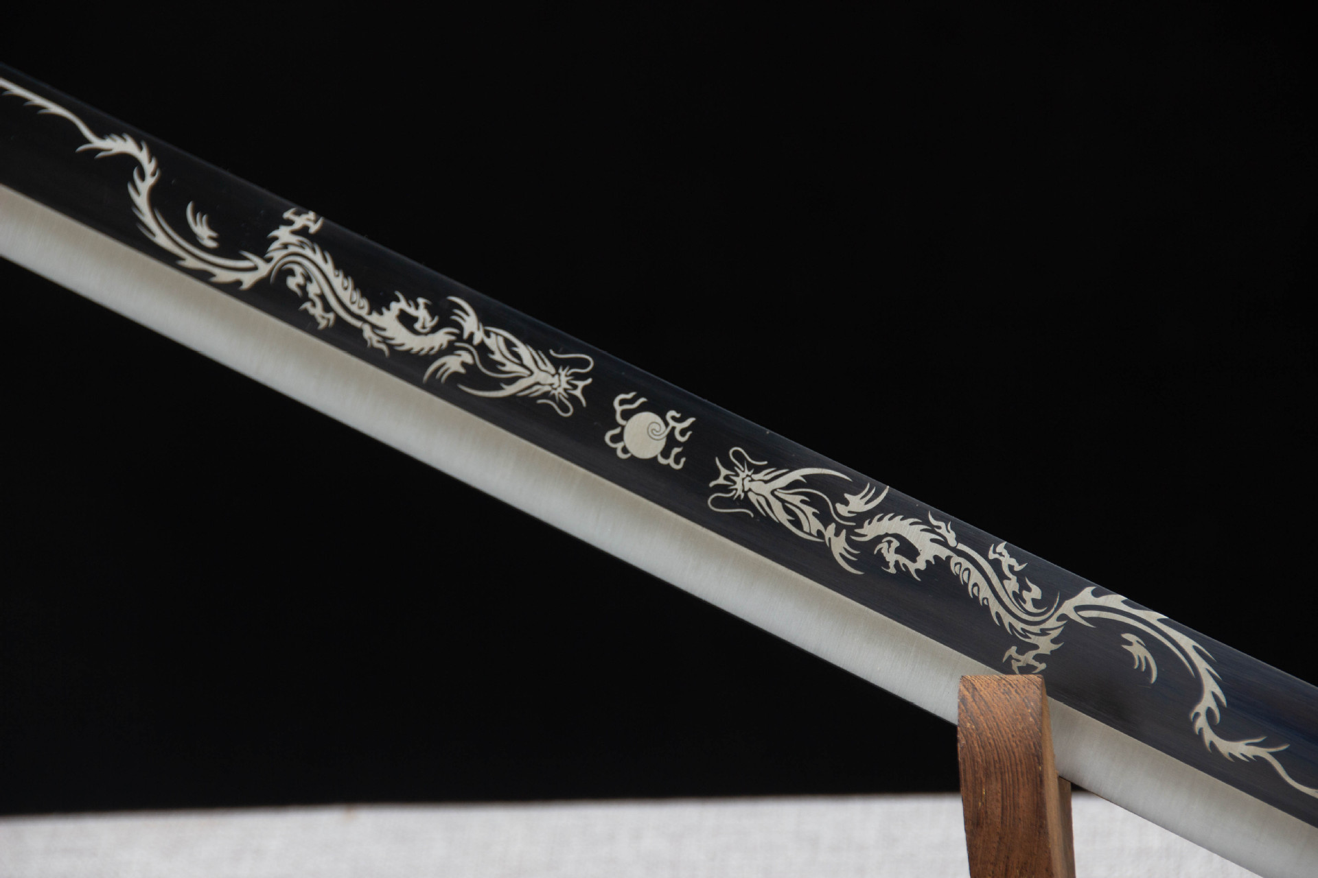 Longquan City Sword High Manganese Steel Chinese Tang Horizontal Knife Integrated Sword Cold Weapon Embroidery Spring Knife Straight Knife Collection Unopened Blade