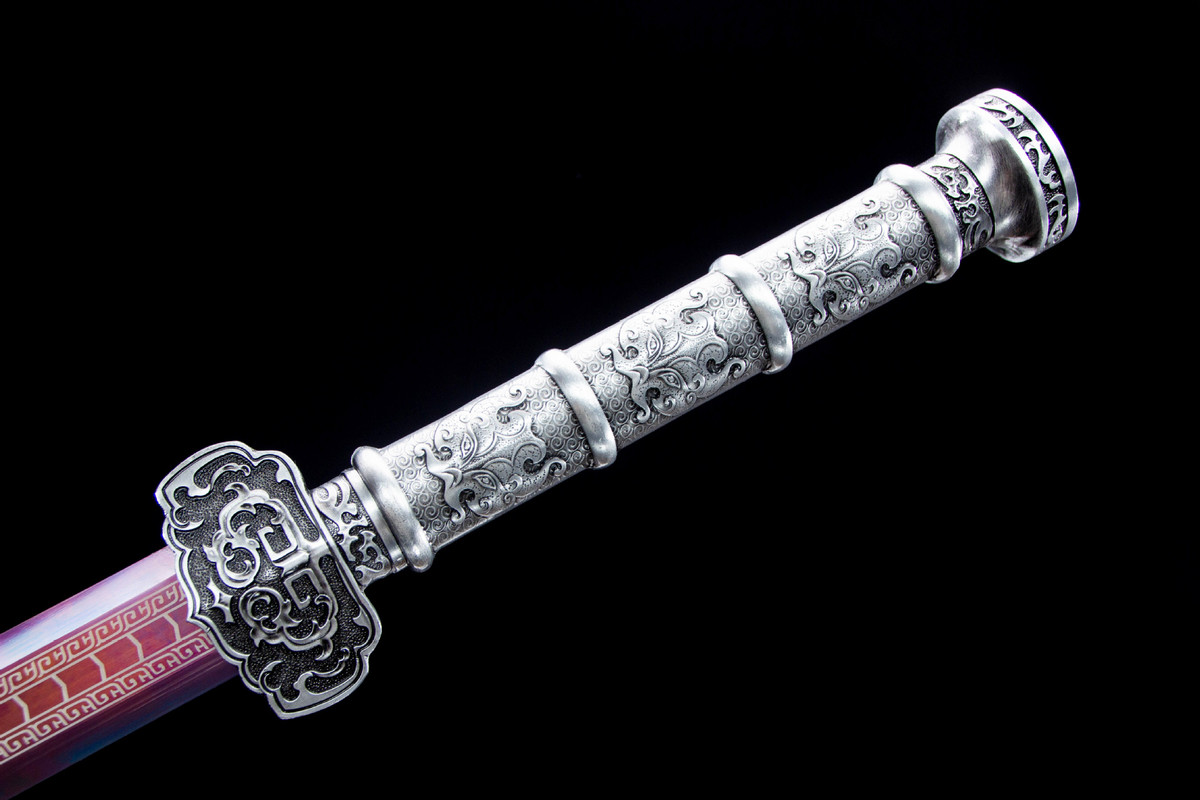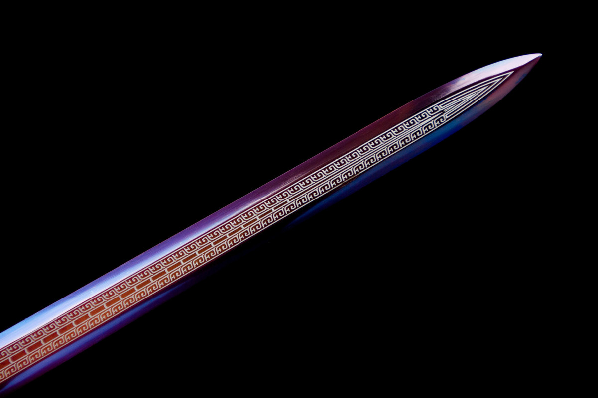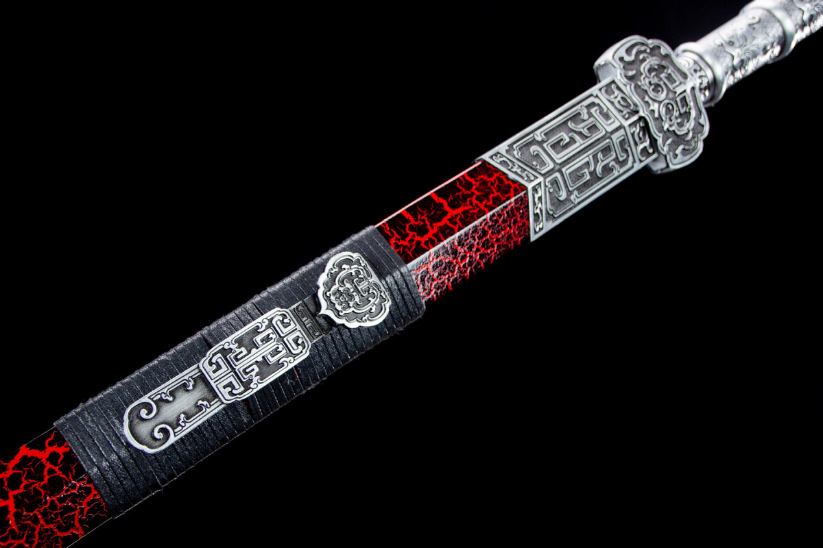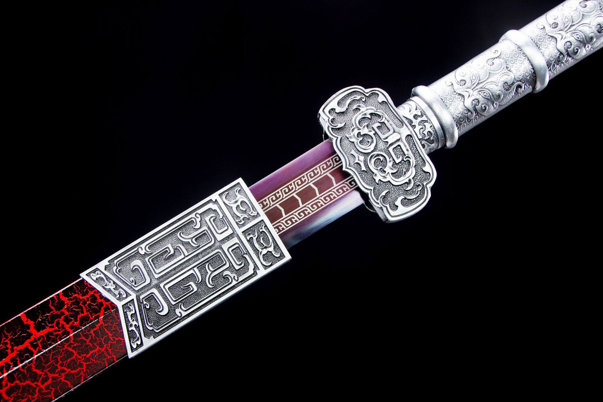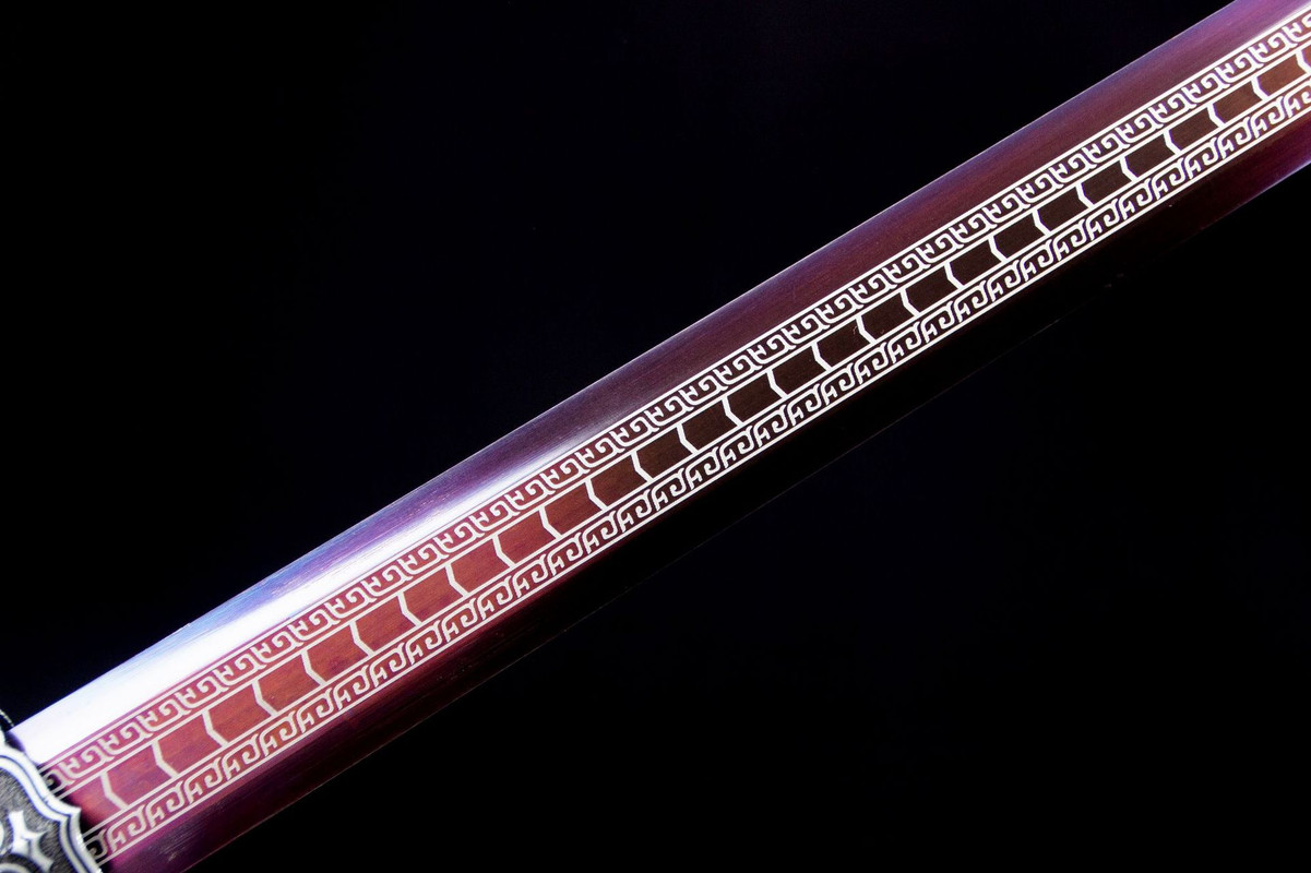 Craftsmanship: Inheriting the traditional sword-making techniques of Longquan, hand-forged using multiple processes including quenching, annealing, and tempering. Total length: 104cm Blade length: 73cm Handle length: 25.5cm (including guard) Blade width: 3.7cm Thickness: 0.5cm Weight: Approximately 1750g (sheath weight: 1300g) Blade material: High-performance manganese steel Sheath material: Solid wood lacquered sheath Handle material: Alloy Fittings: Alloy