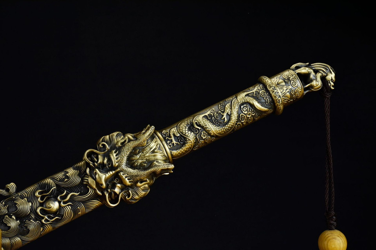 Longquan City Sword Pattern Steel Red Clear Sword Hand-Forged Traditional Tang Sword Craftsmanship Hard Sword Unsharpened