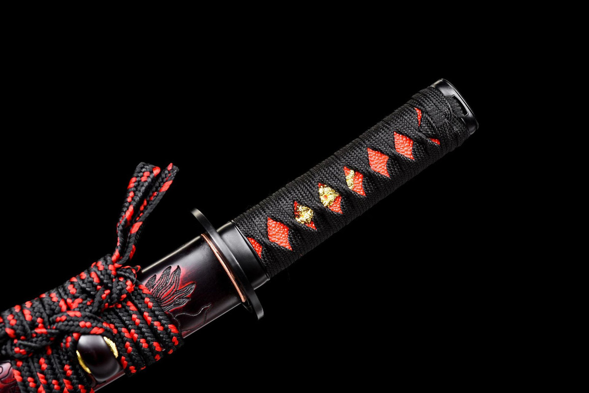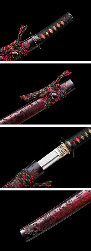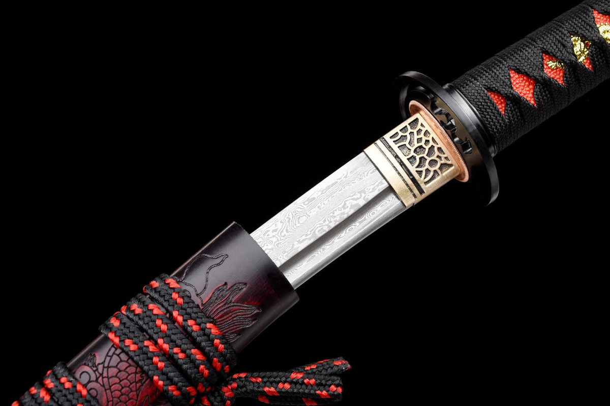 Longquan City Sword and Blade Film and Television Patterned Steel Handmade Japanese-Style Ribbed Short Sword Katana Sword Collection Unsharpened