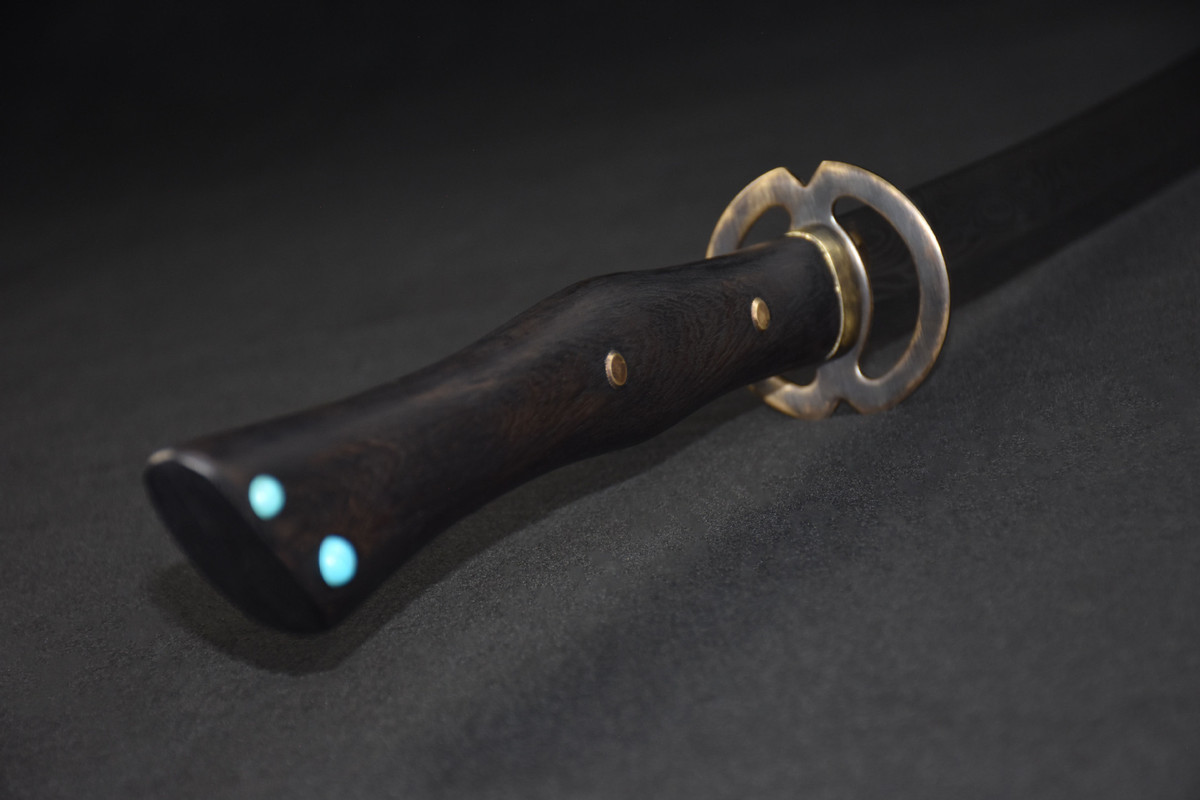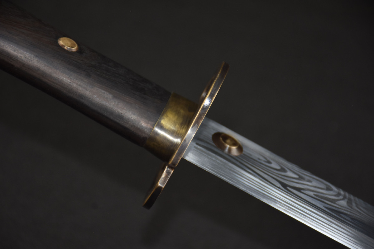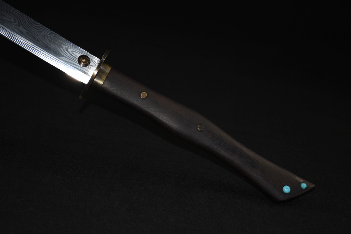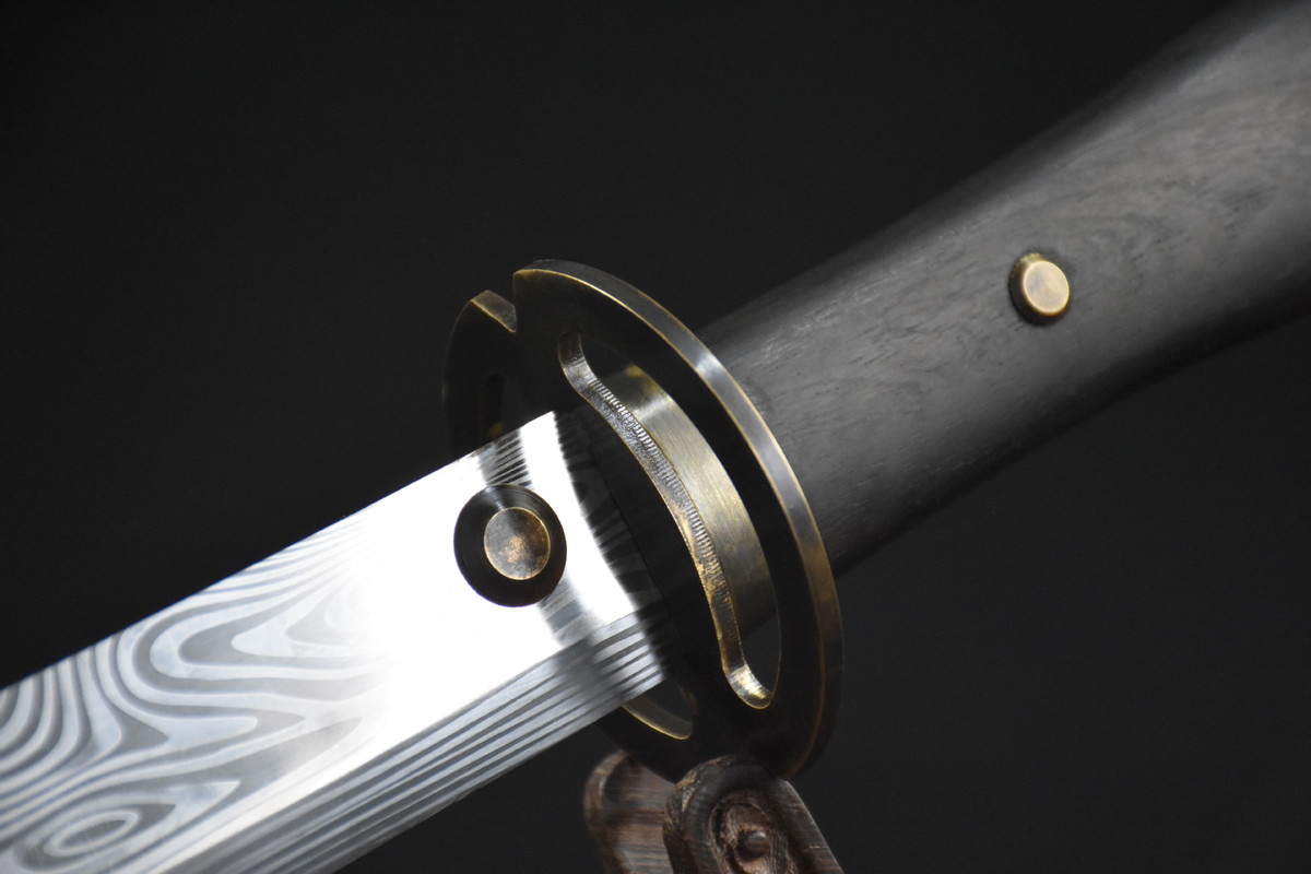 Total length: 89.5 cm Blade length: 49.5 cm Handle length: 32 cm Blade width: 4 cm Blade thickness: 0.6 cm Net weight: 1.58 kg Blade material: High-manganese steel Sheath material: Rosewood Accessories: Hand-wrapped copper Craftsmanship: Traditional forging, meticulously hammered and hand-polished