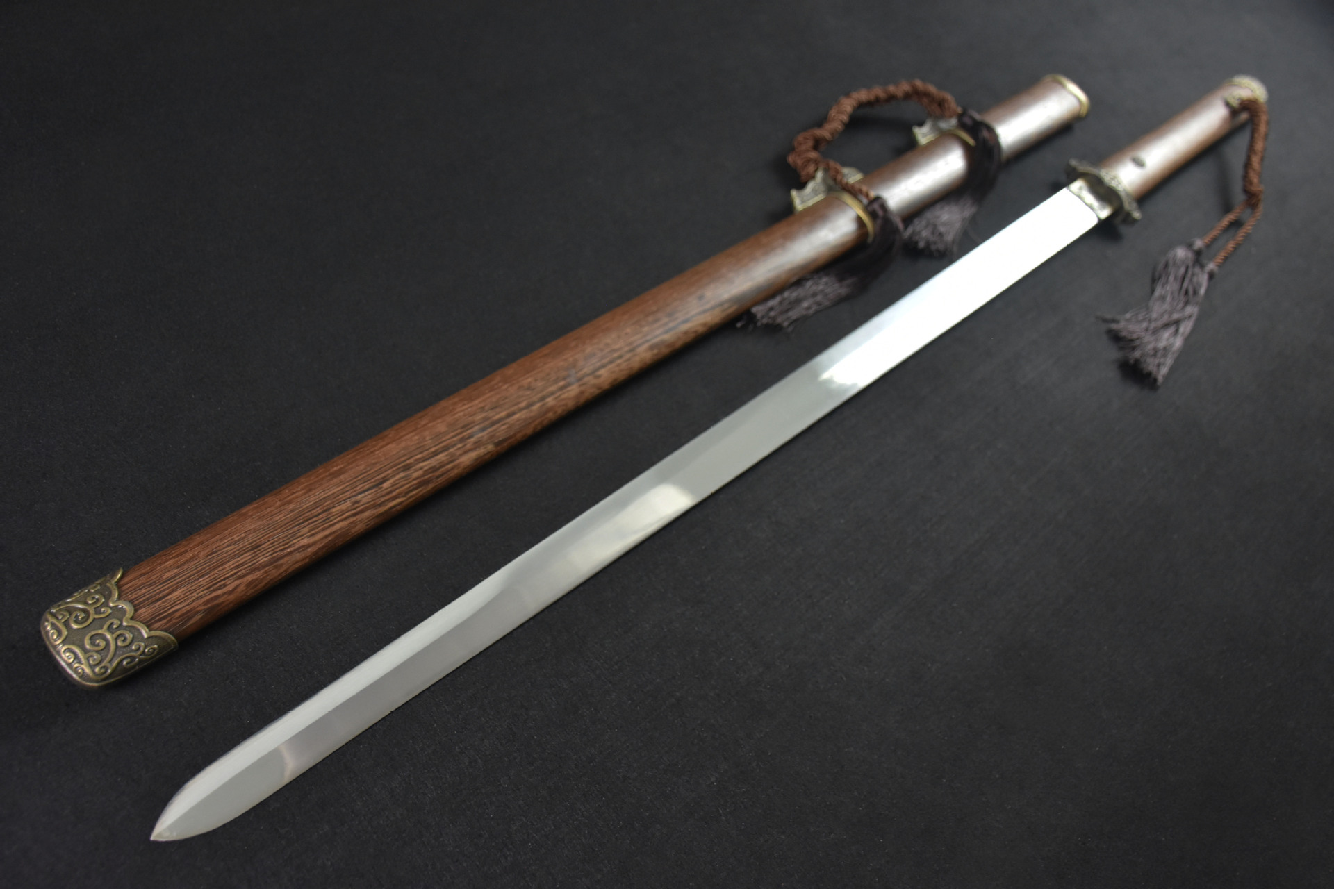 Longquan City sword, carbon steel hand-forged, Tang horizontal knife integrated, plain straight knife, self-defense sword, cold weapon, unopened blade