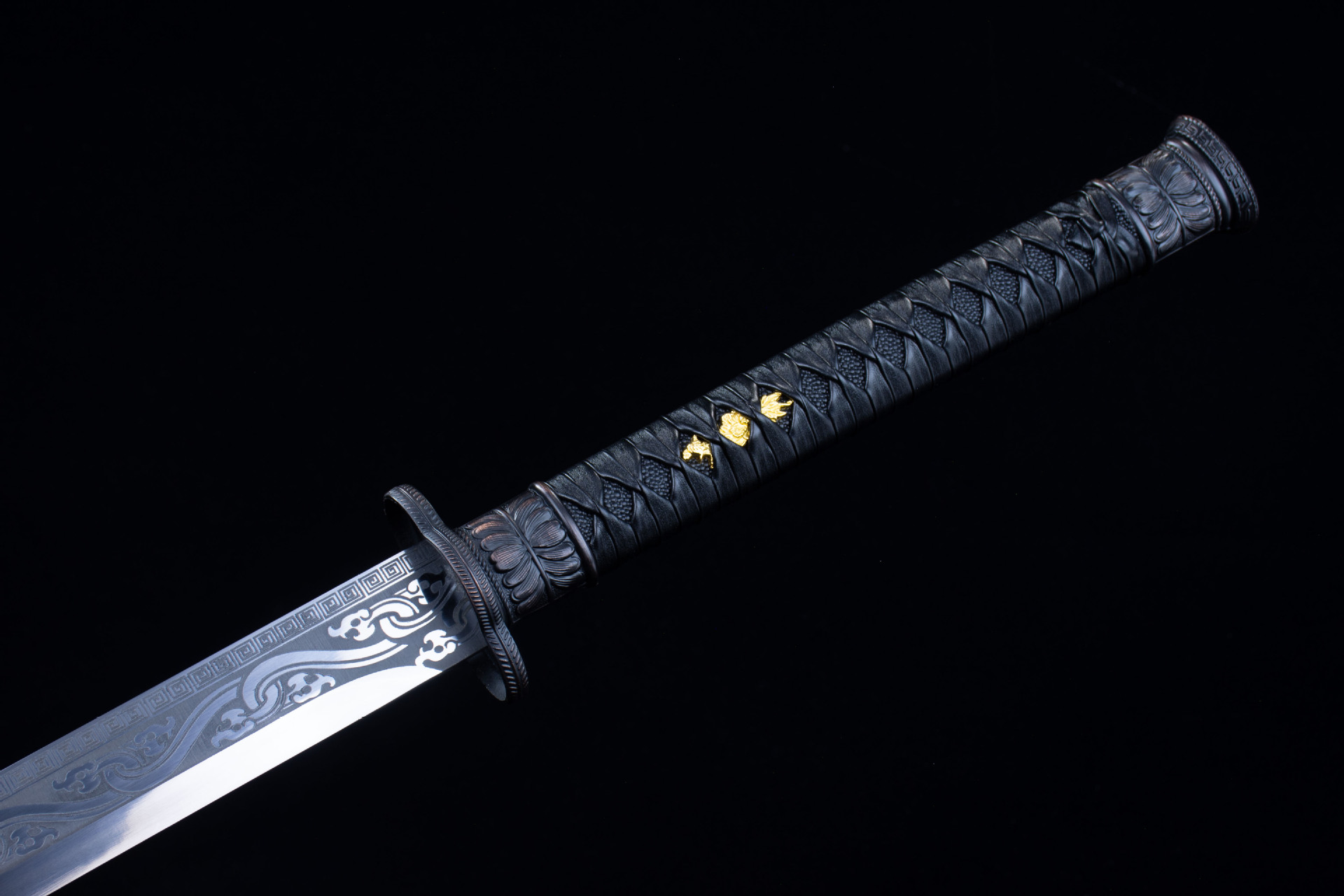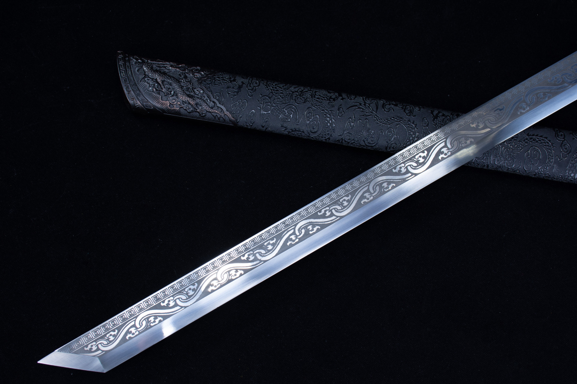 Longquan City sword high manganese steel hand-forged Tang horizontal knife self-defense sword embroidered spring knife film and television cold weapon uncut