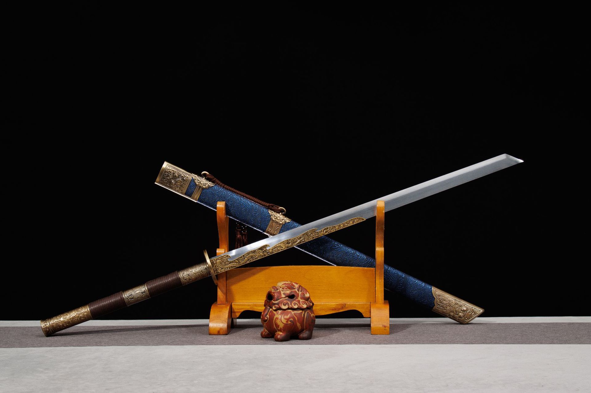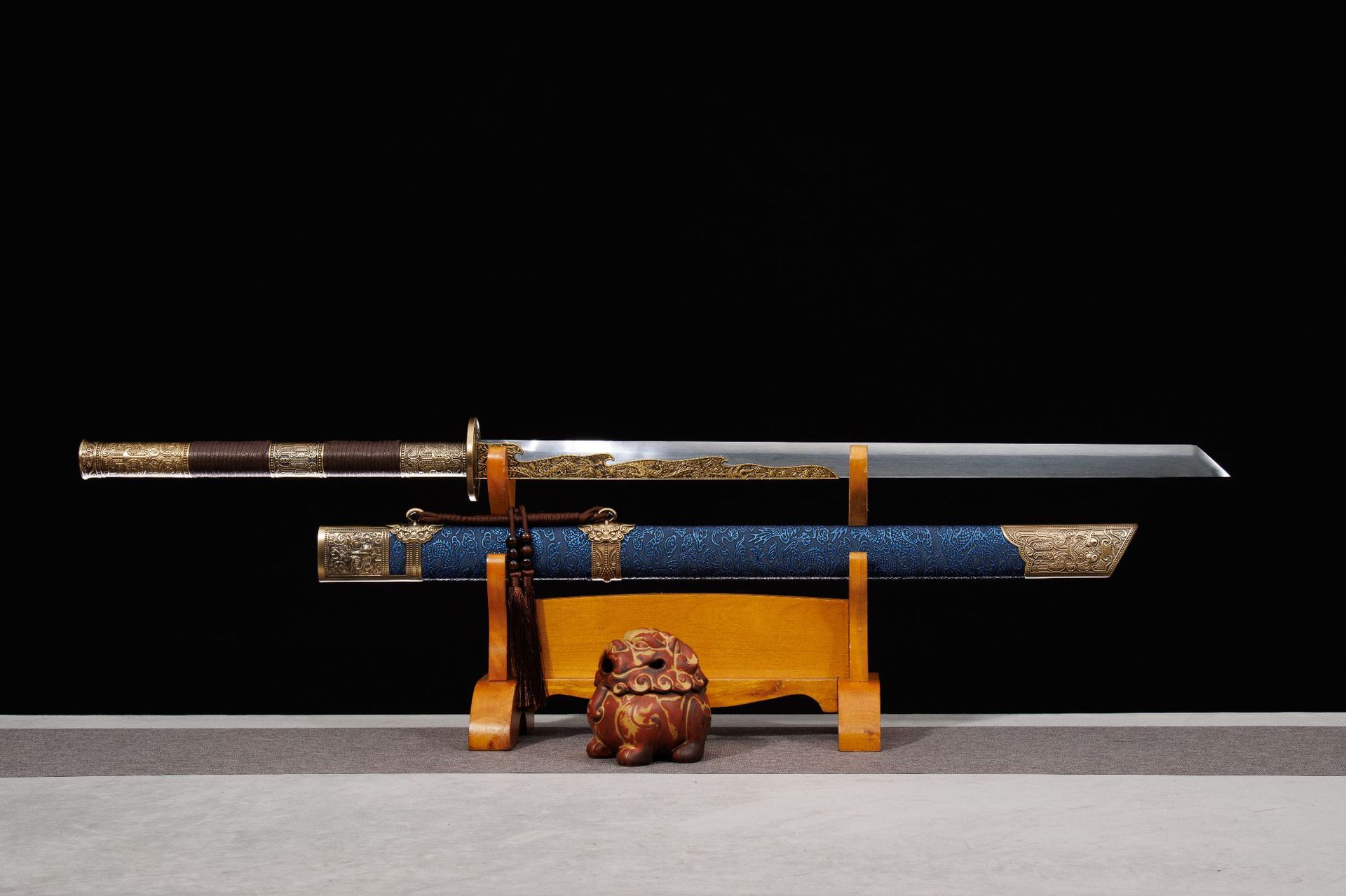 Longquan City sword, high manganese steel, two-handed Kangxi battle knife, film and television embroidered spring knife, Tang horizontal knife, cold weapon, uncut blade