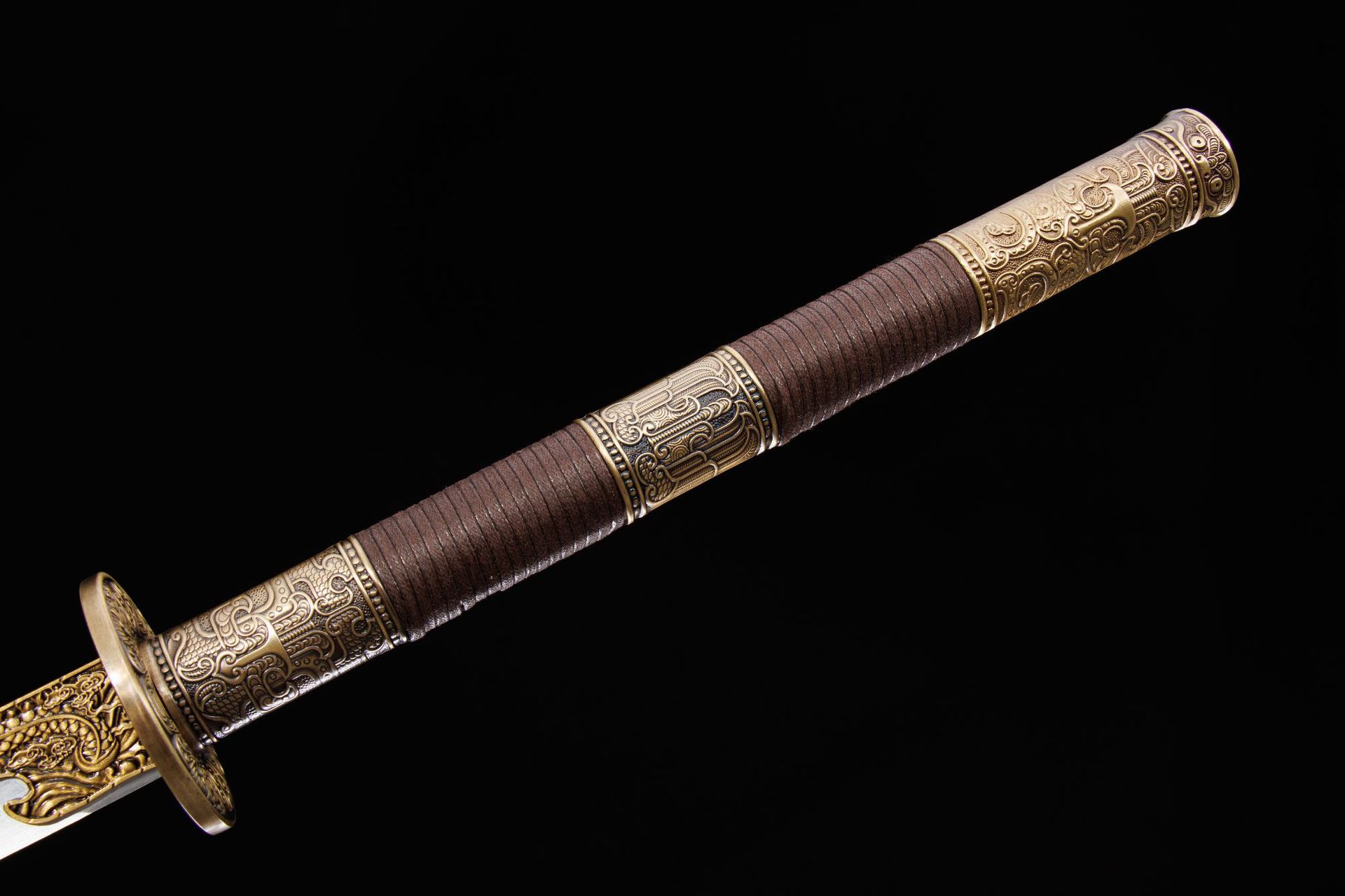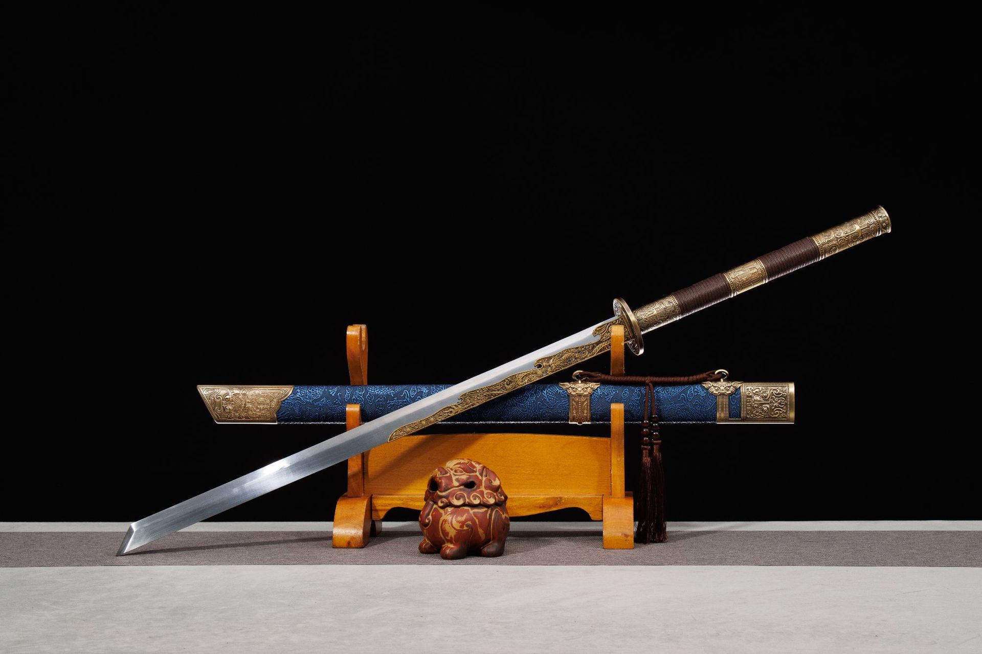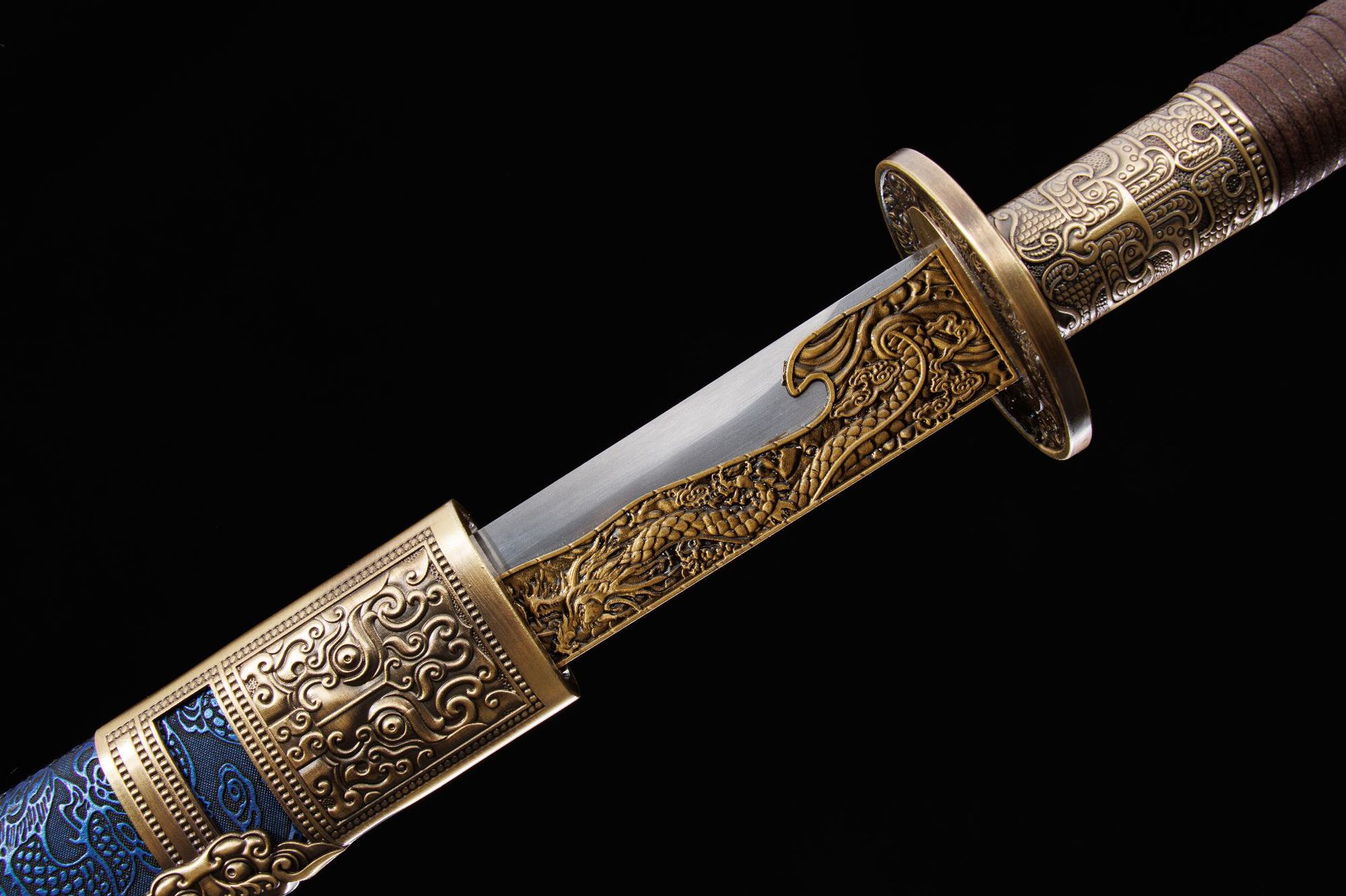 • Longquan City sword, high manganese steel, two-handed Kangxi battle knife, film and television embroidered spring knife, Tang horizontal knife, cold weapon, uncut blade