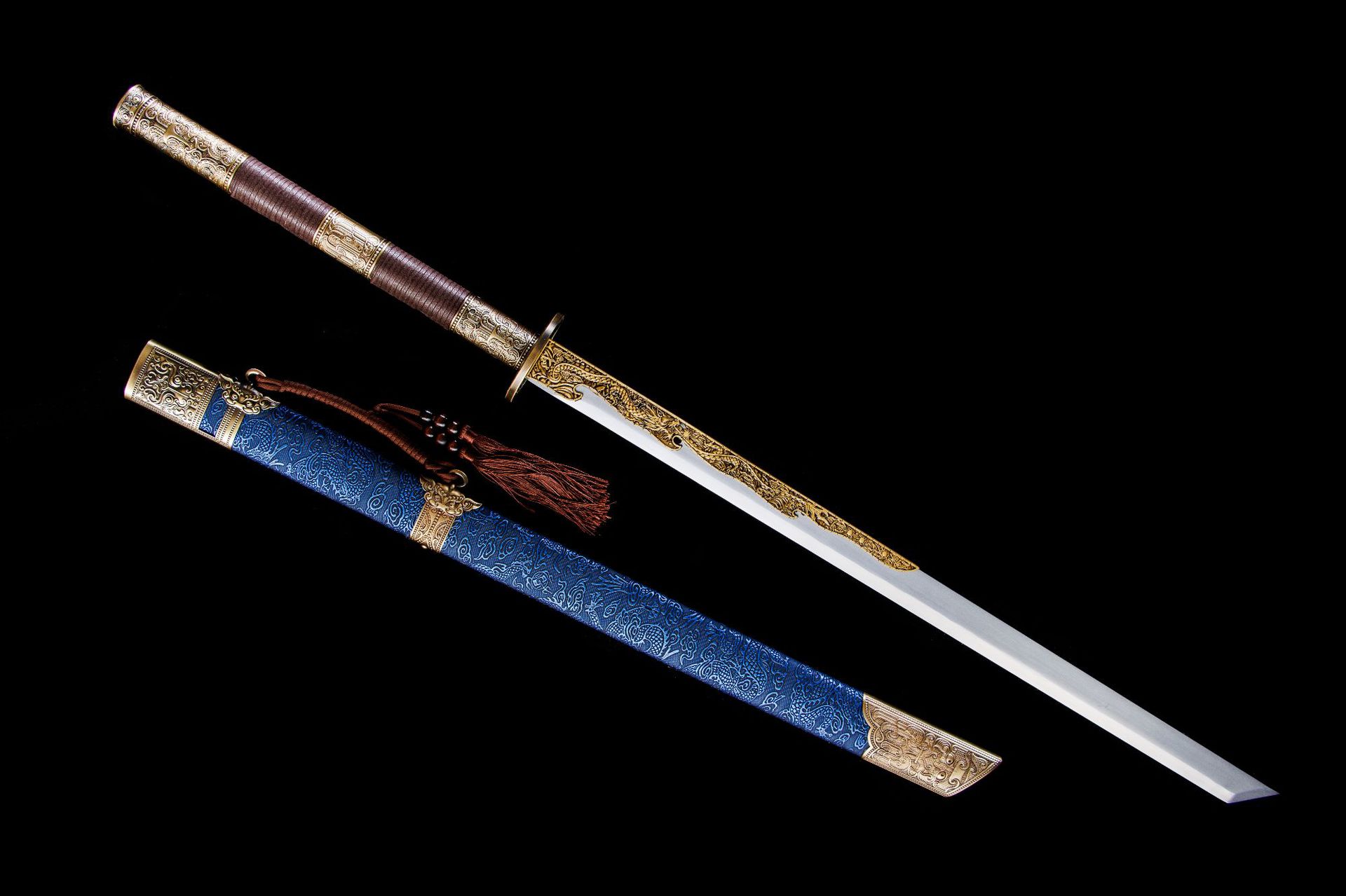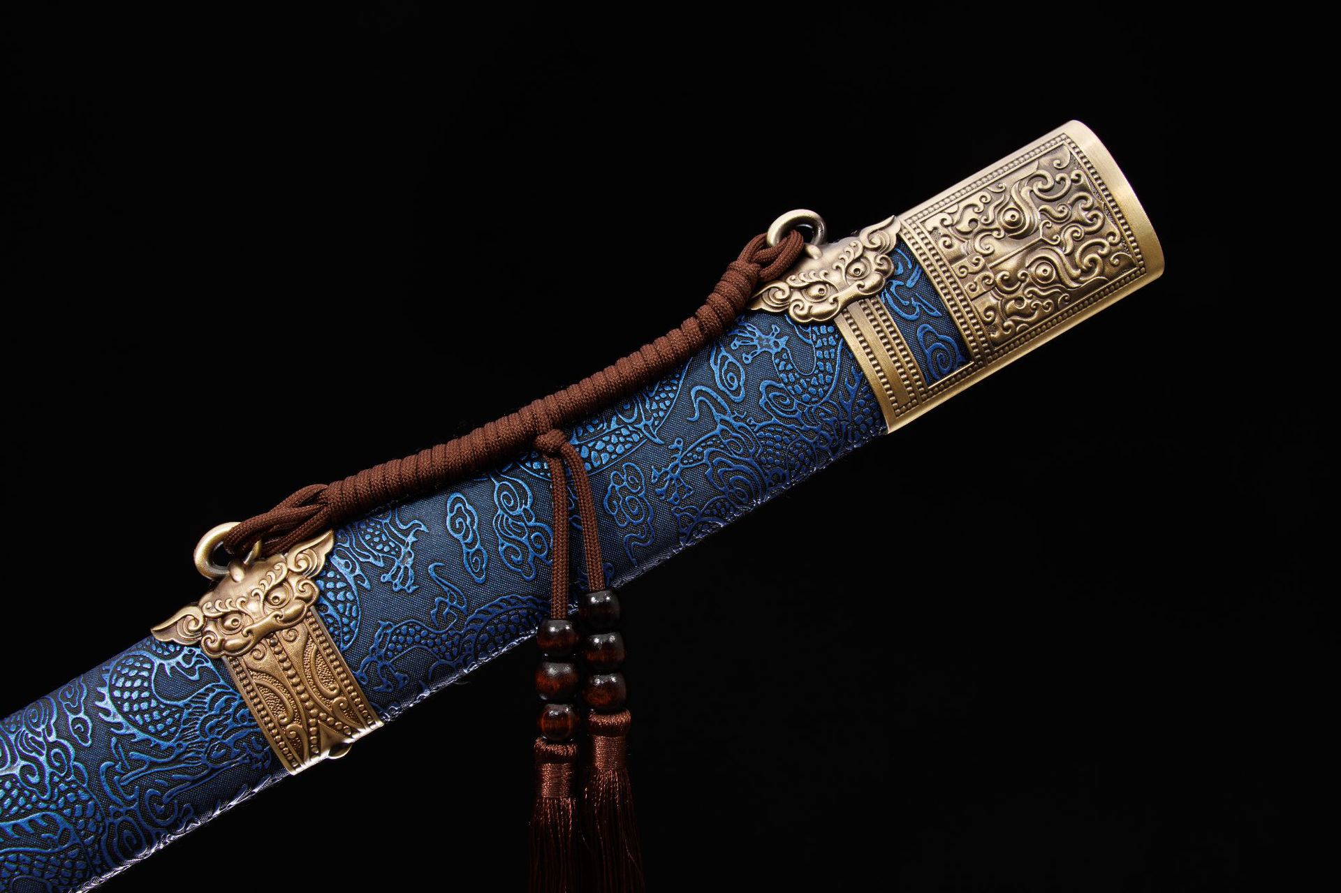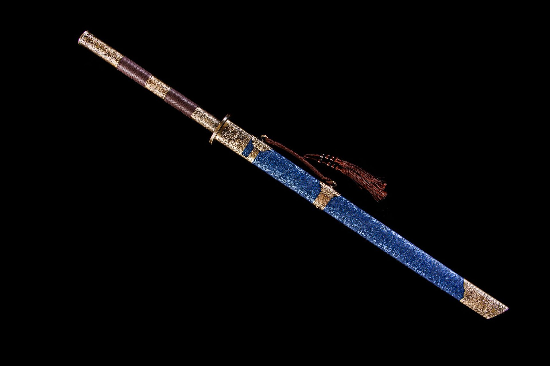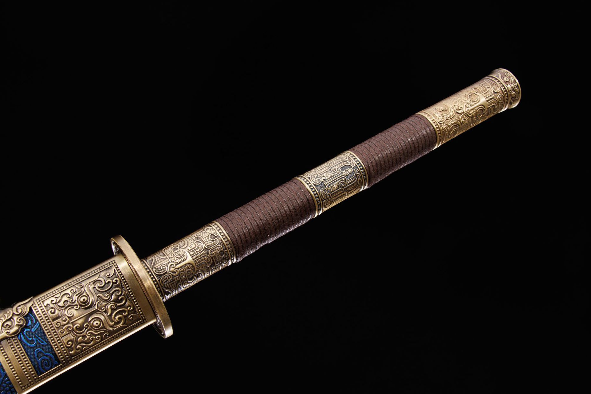 • Longquan City sword, high manganese steel, two-handed Kangxi battle knife, film and television embroidered spring knife, Tang horizontal knife, cold weapon, uncut blade