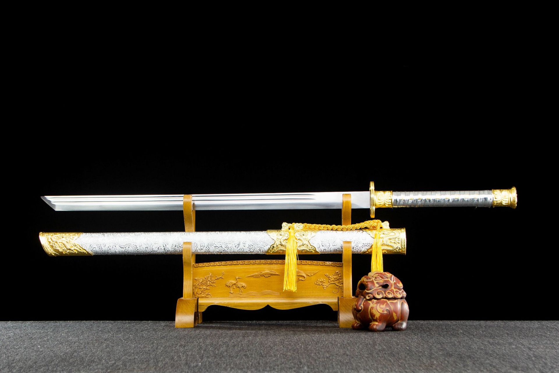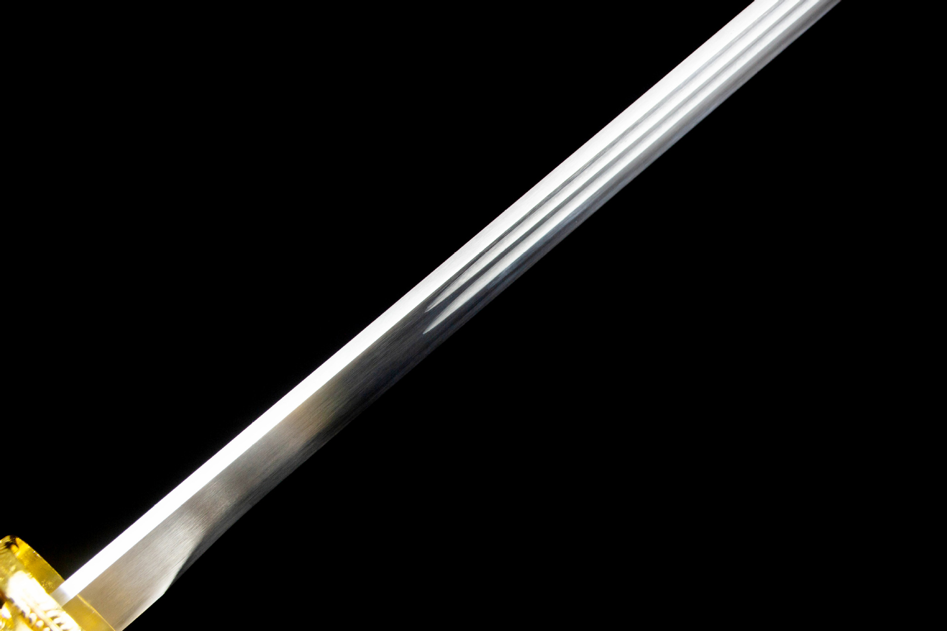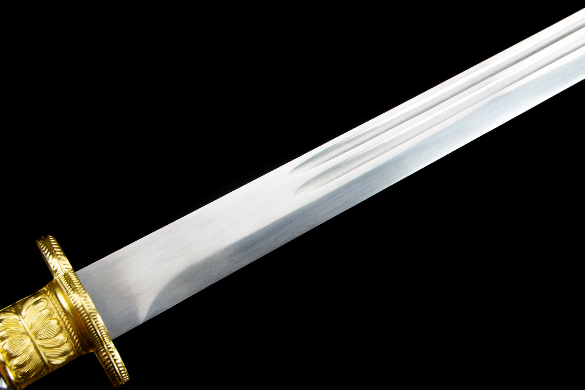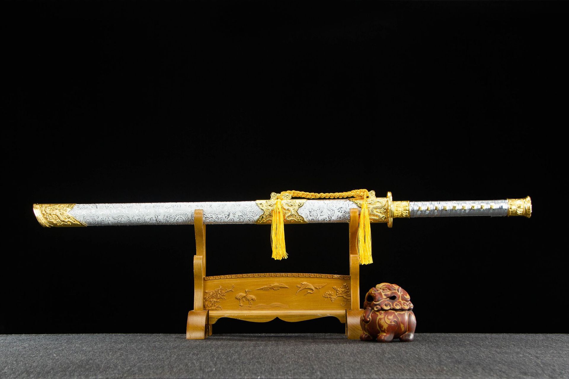 Longquan City Sword High Manganese Steel Integrated Tang Heng Knife Jinyiwei Saber Embroidered Spring Knife Black Gold Ancient Knife Collection Unopened Blade Total length: 108cm Blade length: 72cm