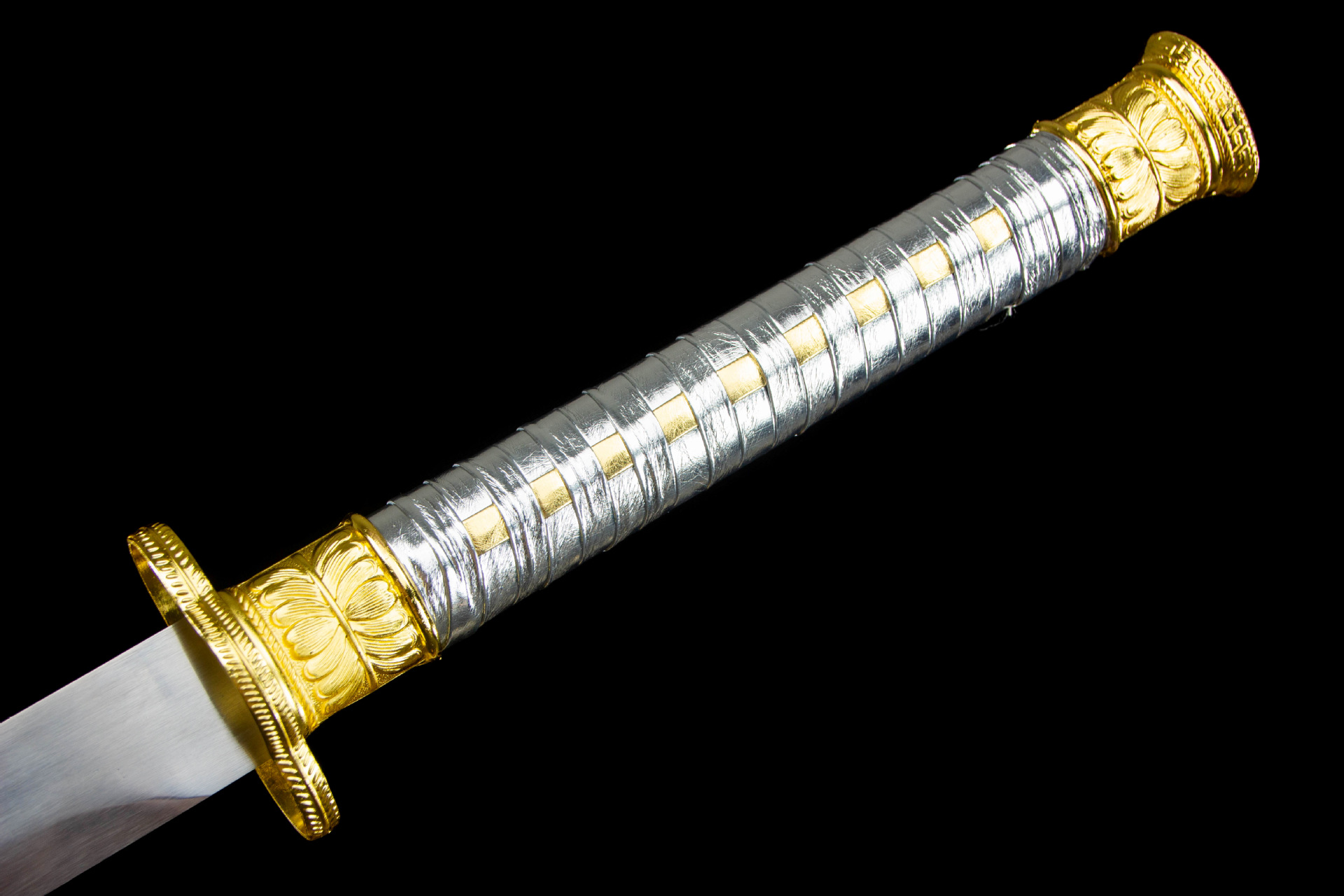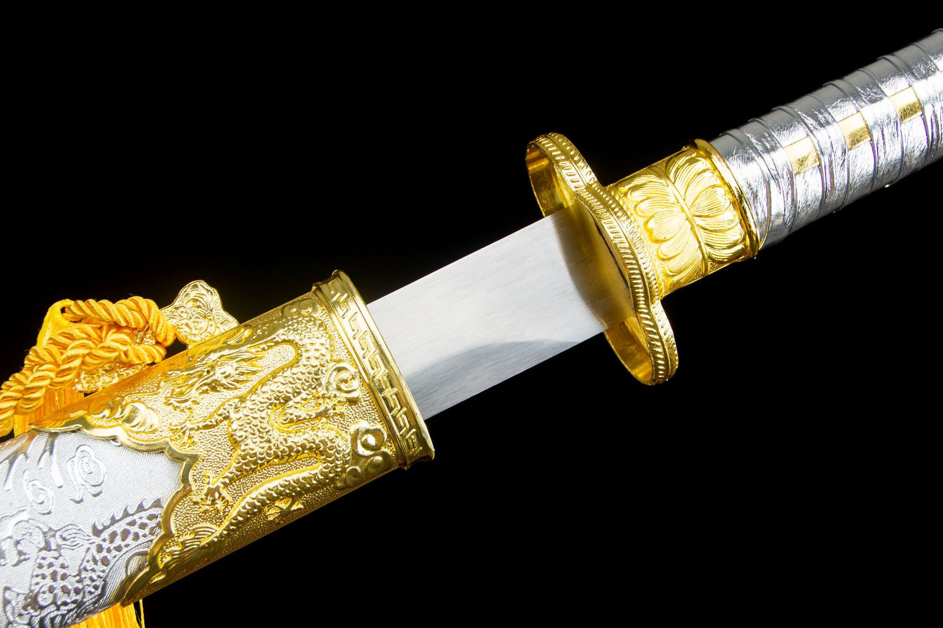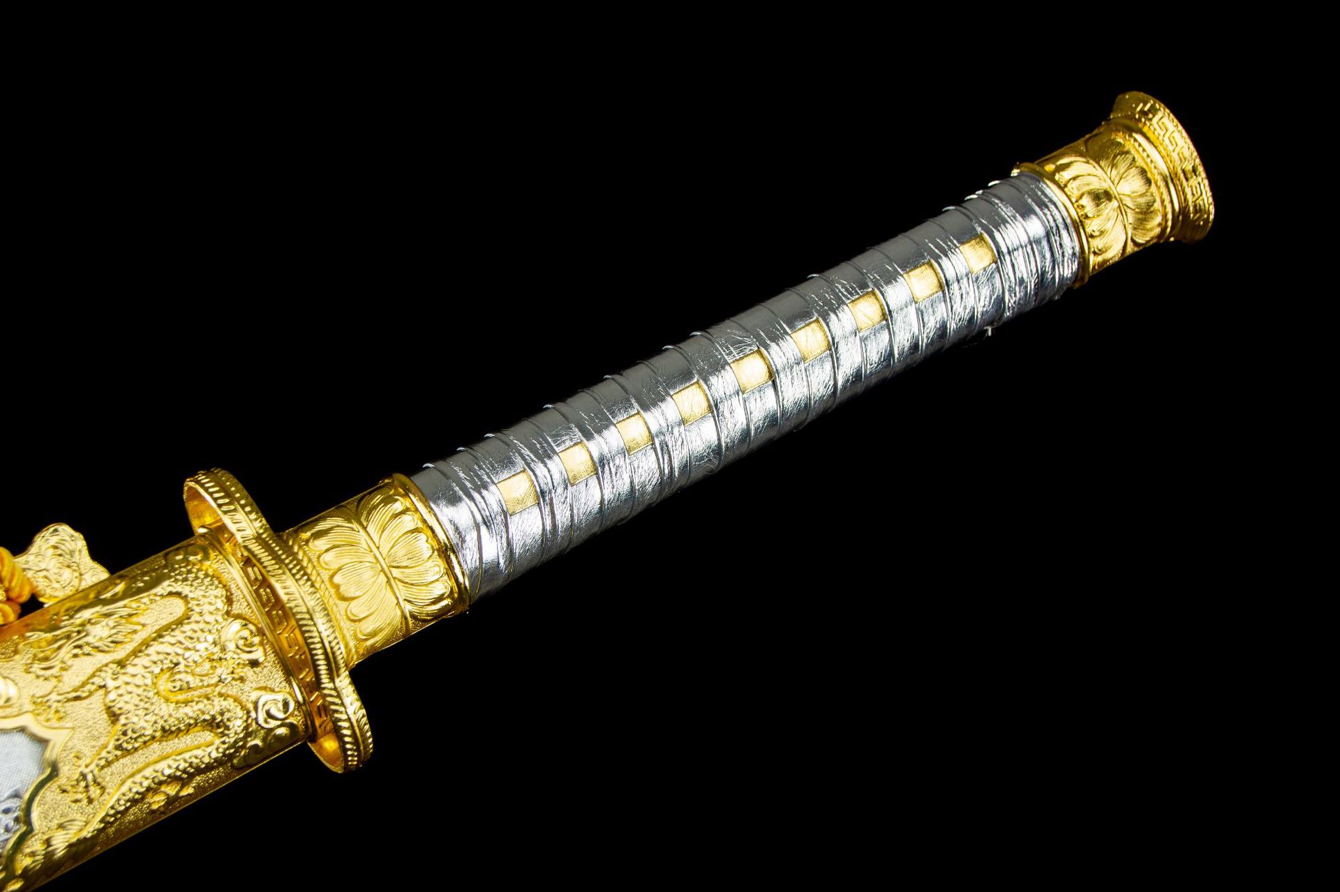 Longquan City Sword High Manganese Steel Integrated Tang Heng Knife Jinyiwei Saber Embroidered Spring Knife Black Gold Ancient Knife Collection Unopened Blade Total length: 108cm Blade length: 72cm