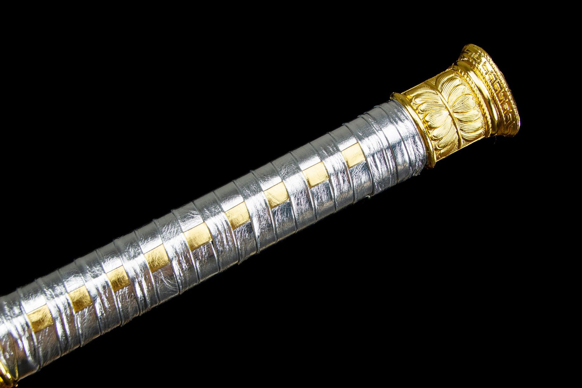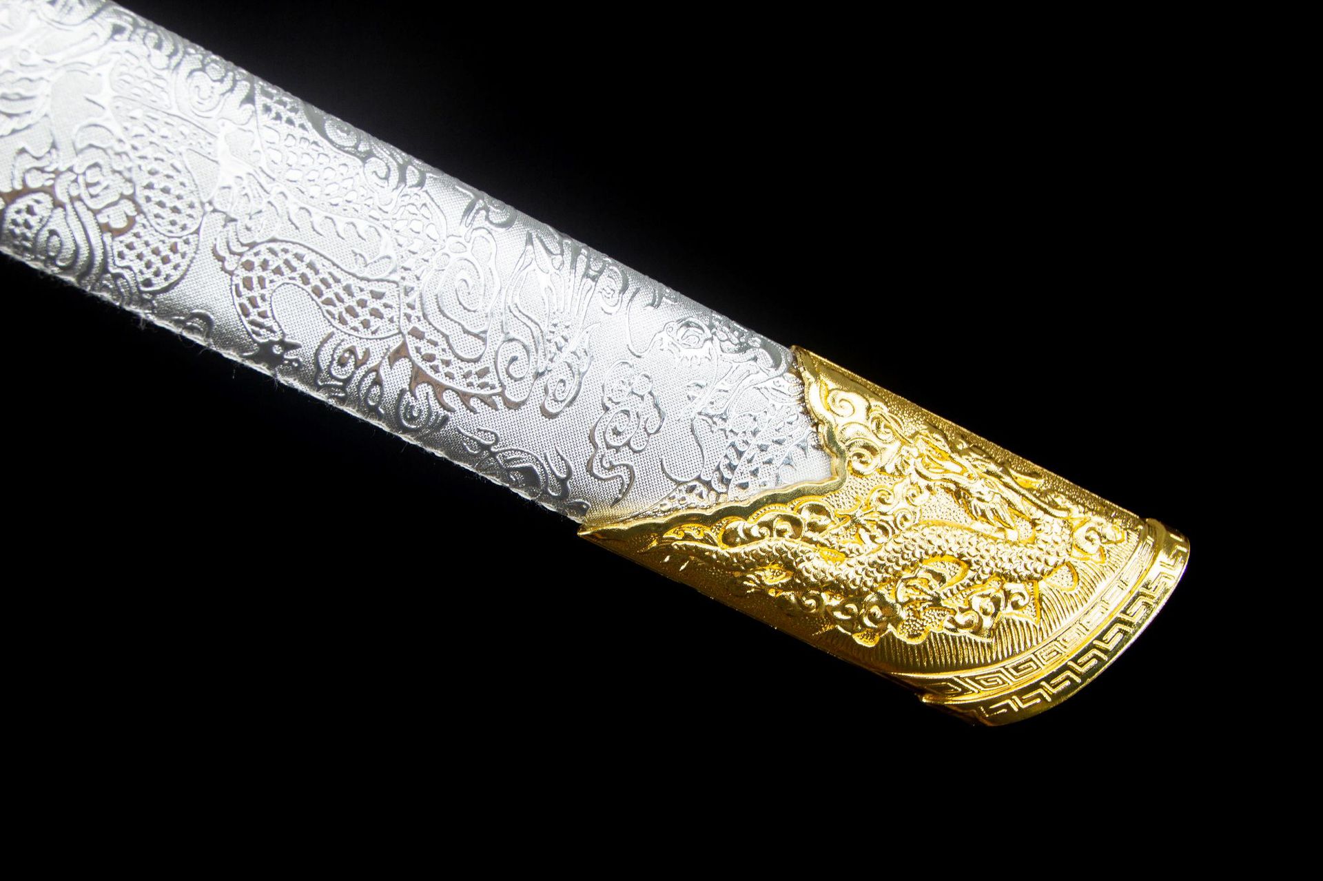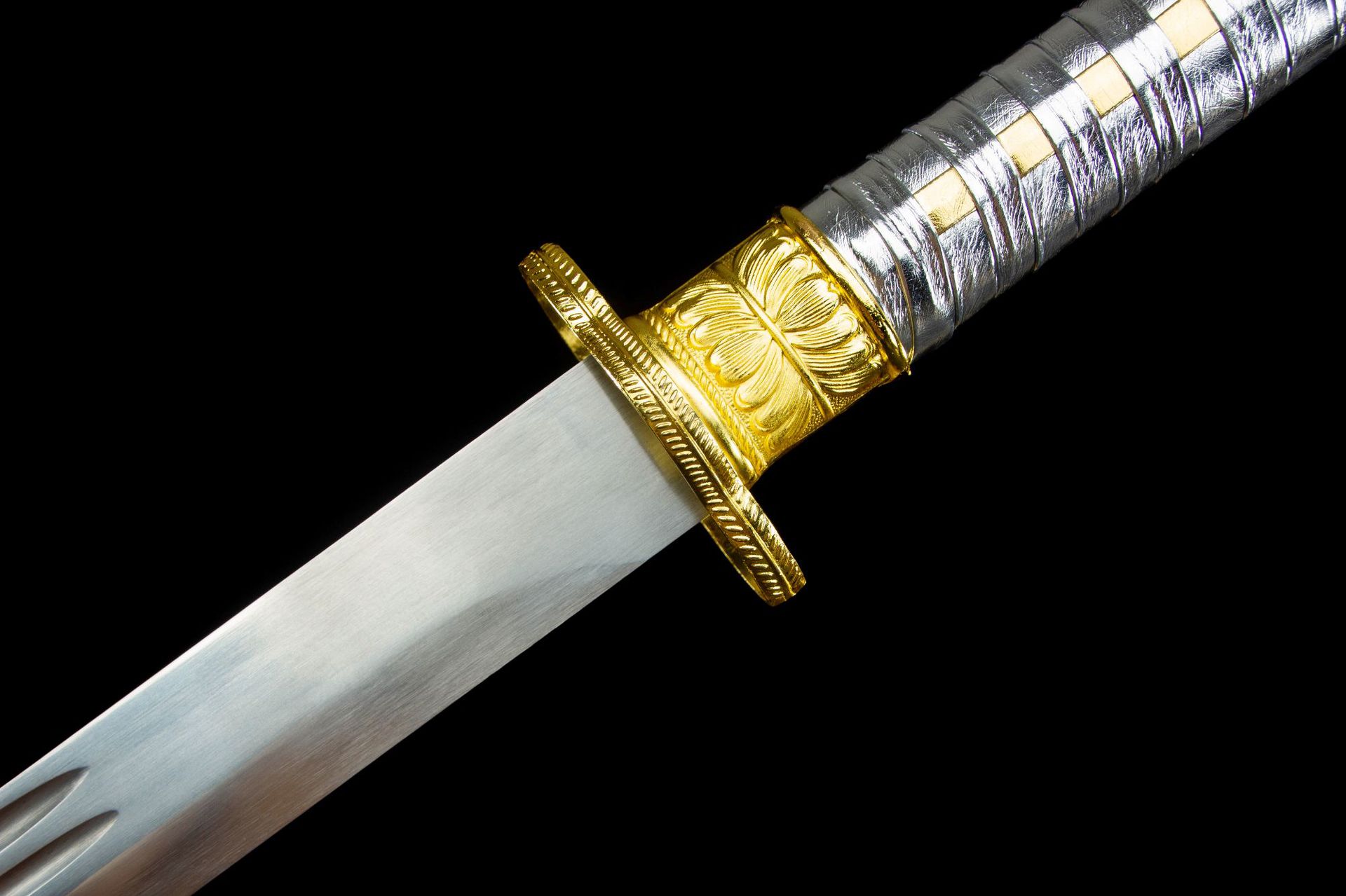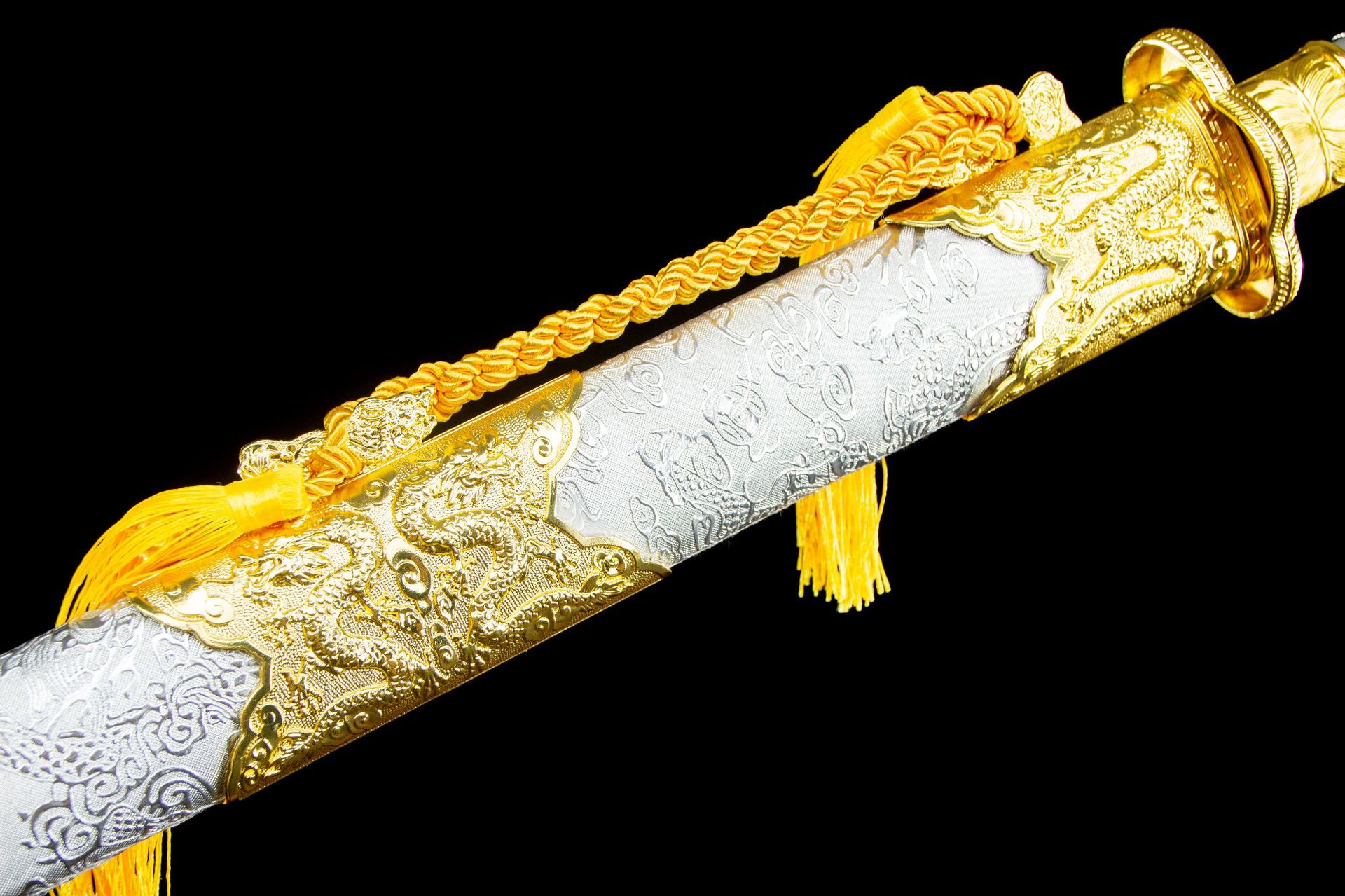 Longquan City Sword High Manganese Steel Integrated Tang Heng Knife Jinyiwei Saber Embroidered Spring Knife Black Gold Ancient Knife Collection Unopened Blade Total length: 108cm Blade length: 72cm